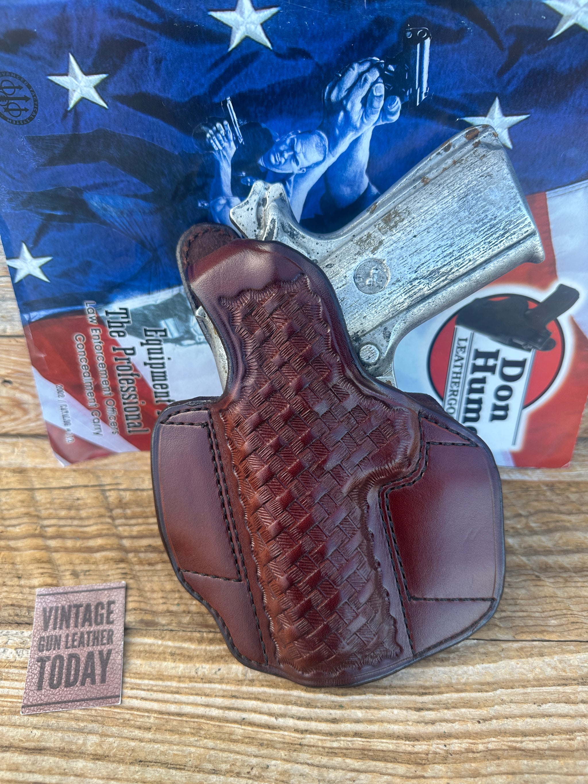 Vintage new old stock Don Hume H721 10-3 1/3" Double 9 Holster. Holster is plain black / basket stamped leather, black / saddle brown with covered 1 3/4" belt slots. This is for the following: