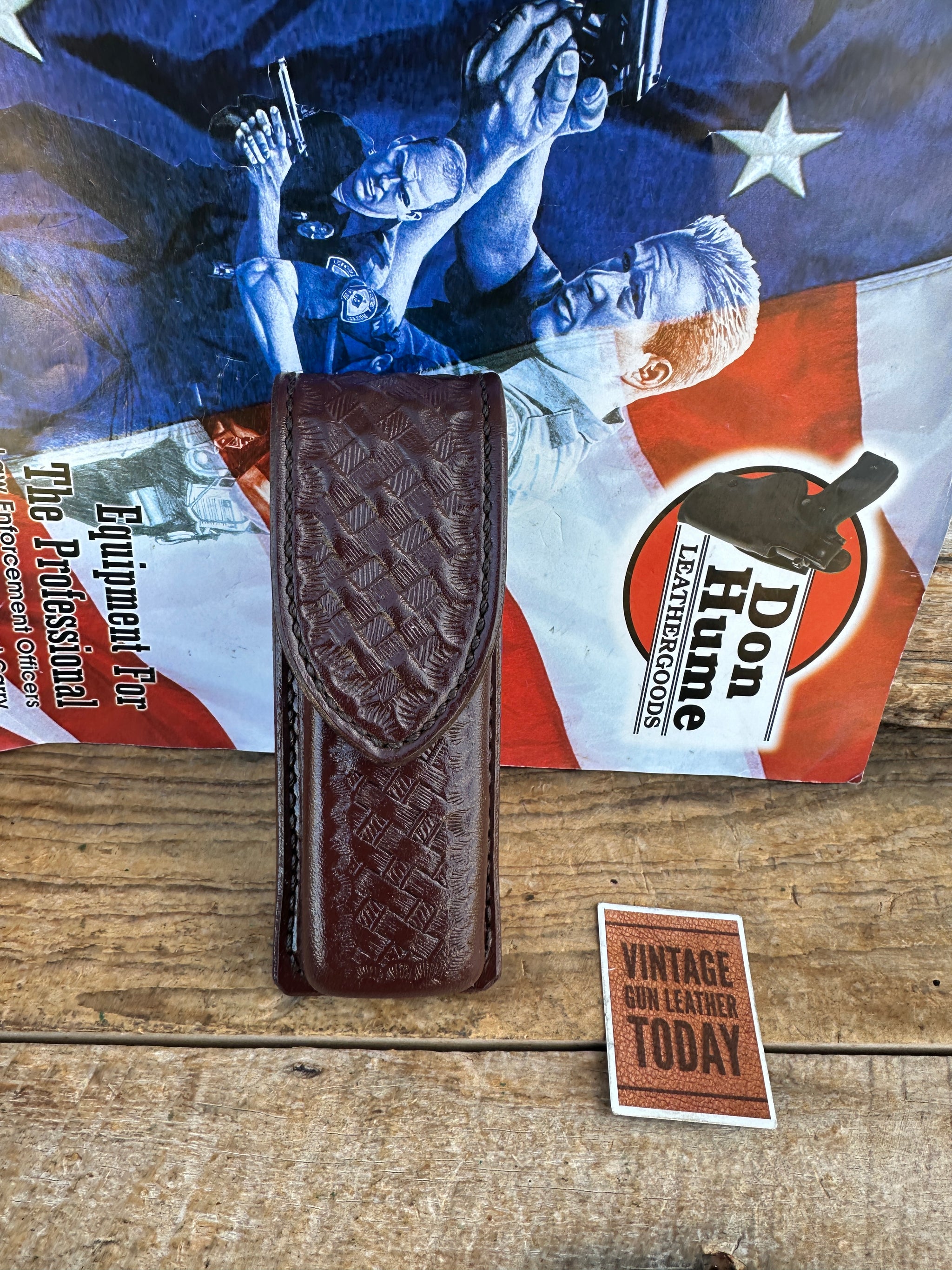 Don Hume Brown Basket Stamped Leather Single Magazine Carrier For Glock H&K Sig