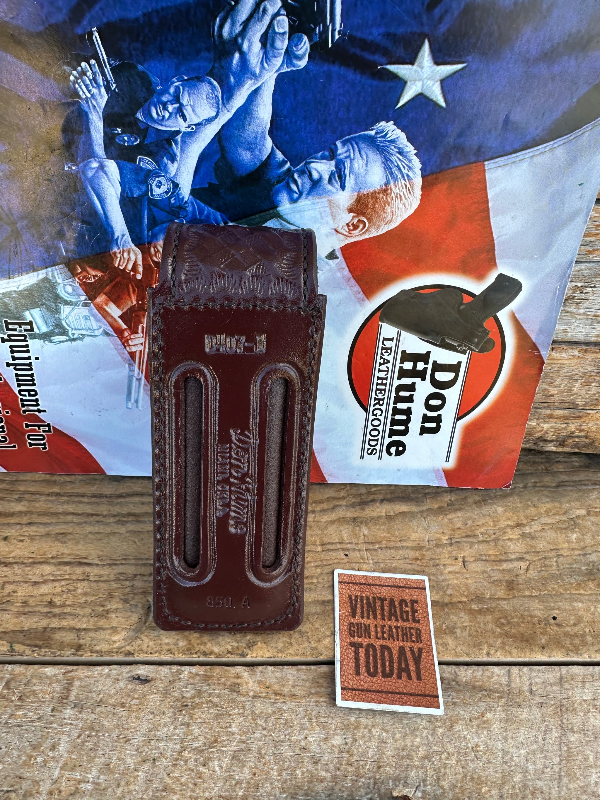 Don Hume D407-1 HS 850A, Don Hume Brown basket stamped single magazine carrier with hidden snap and 2 3/4" belt slot. This color has been discontinued by Hume..