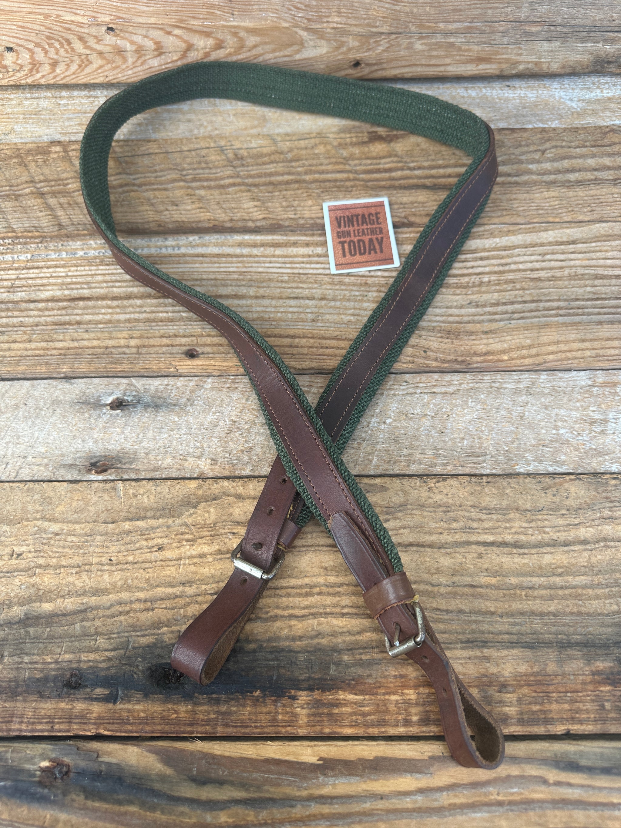 Vintage Green Canvas / Leather Adjustable 1" wide Rifle Sling