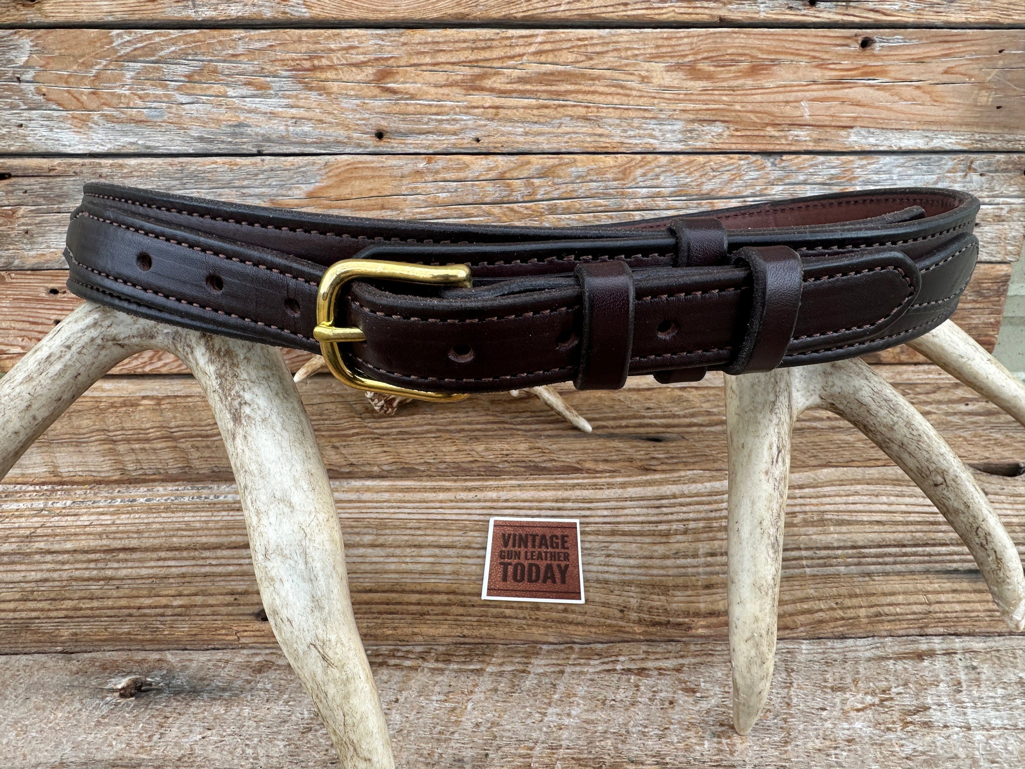 Brown Leather Ranger Style 1 1/2" Gun Belt 32" to 38" Brass Buckle SZ 36
