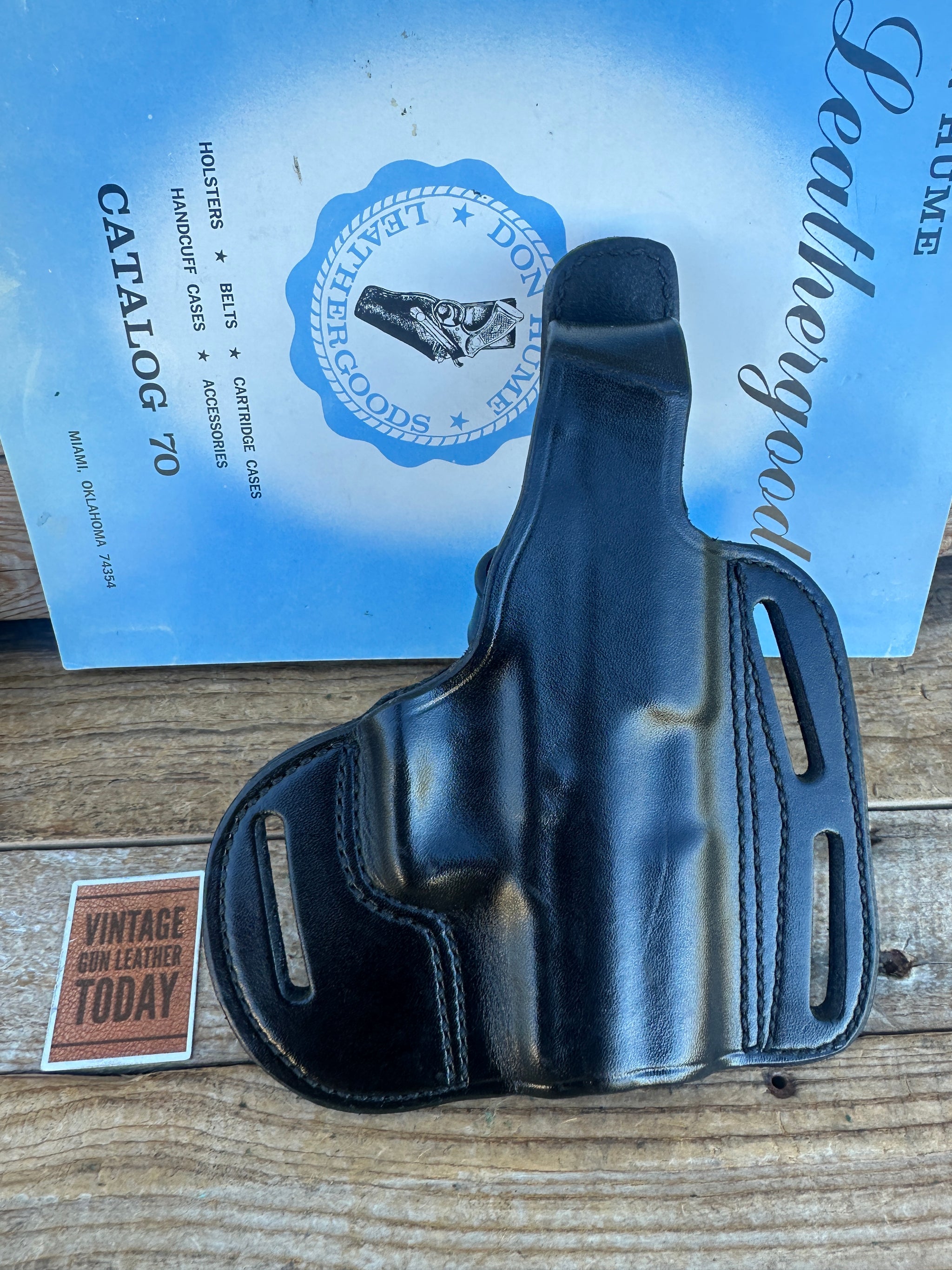 New old stock Don Hume H728-1 / 25USPC-1 black leather OWB holster. This is Right draw for a Heckler & Koch 45 Compact. Holster can be worn strong side or cross draw. Slots will fit a belt up to 1 3/4"..