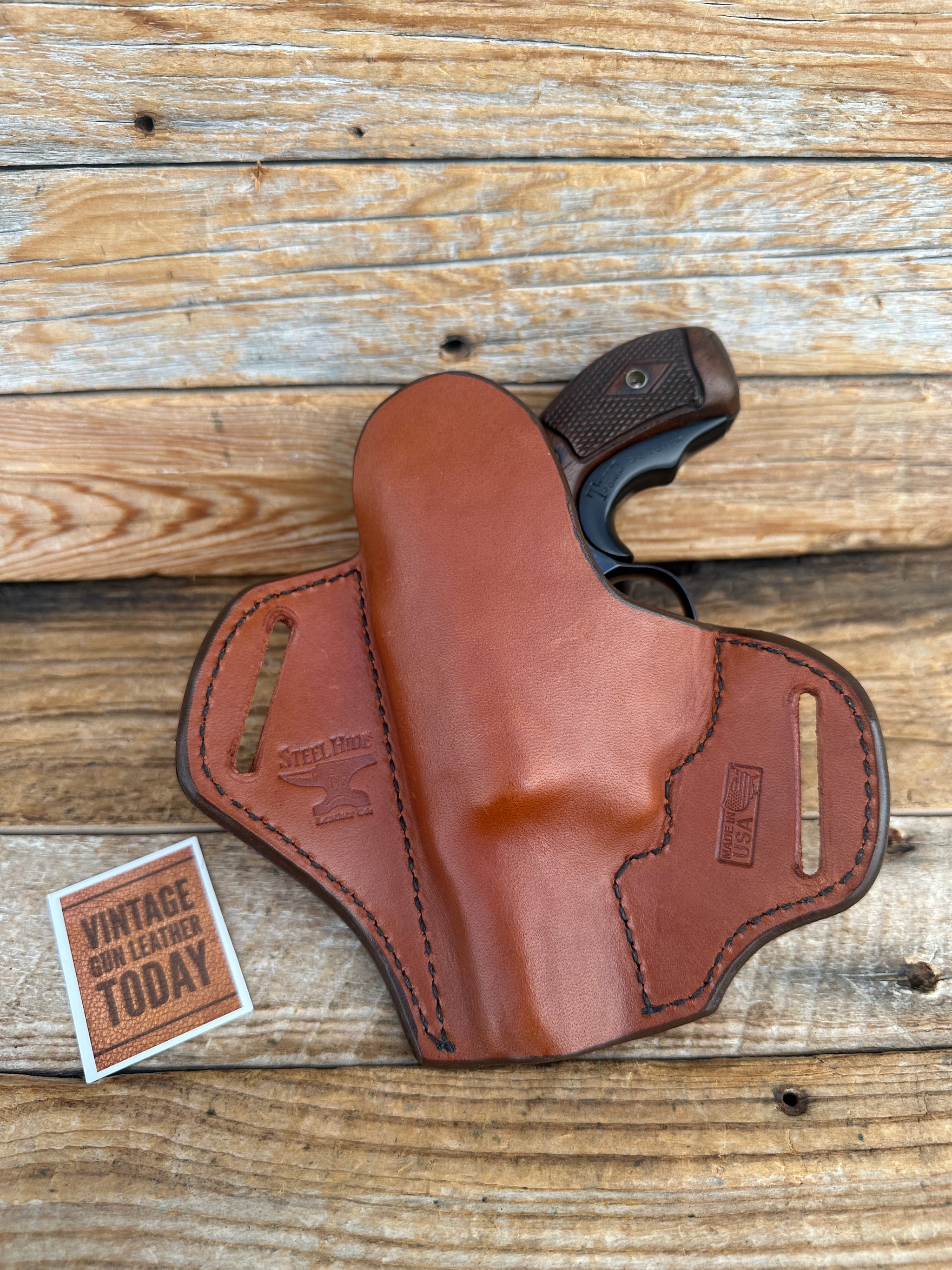 Steel Hide Brown Leather OWB Holster for S&W J Frame 36 Chief 60 2" Revolver