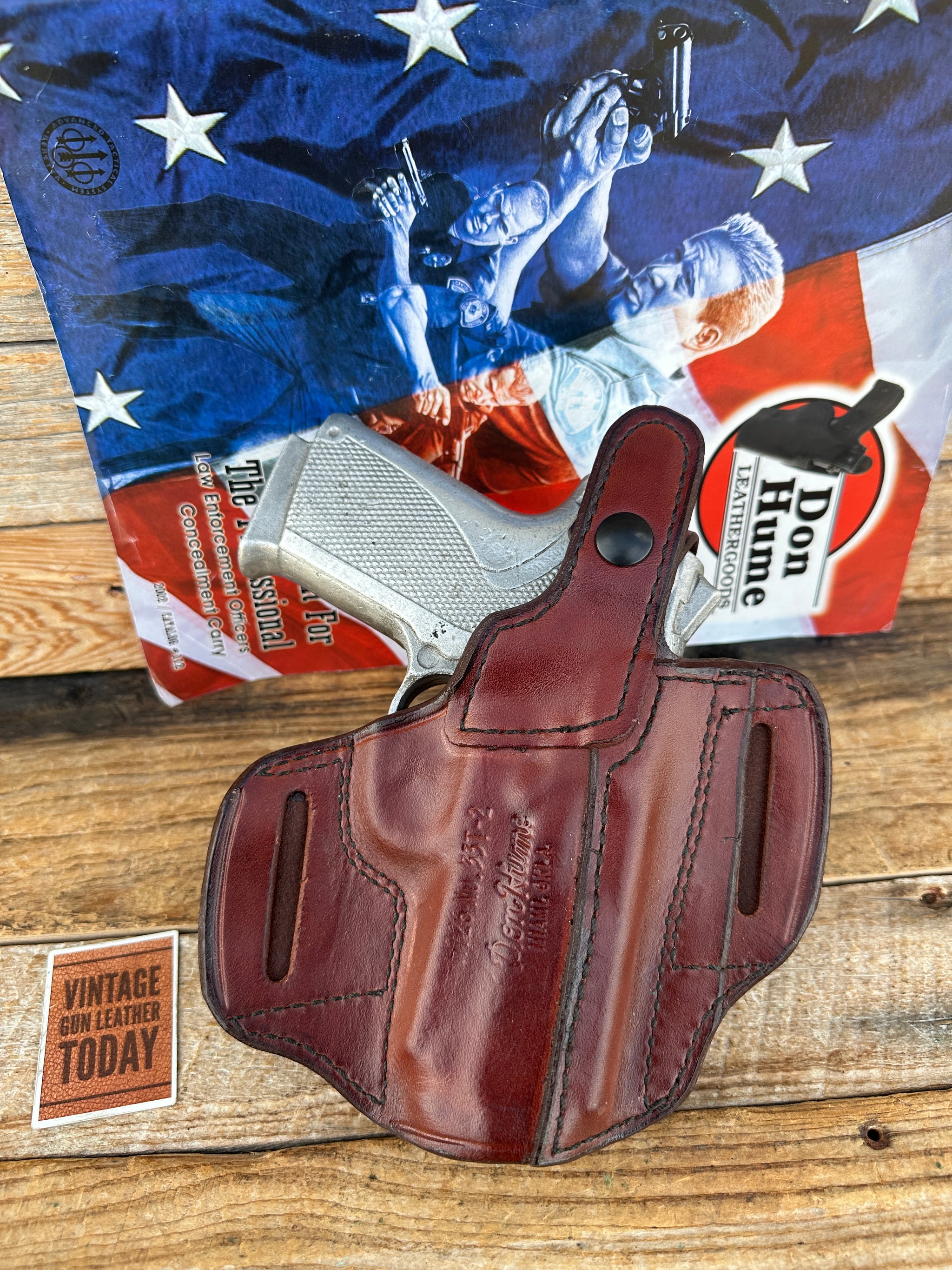 Vintage new old stock Don Hume Optics Ready H726 NO. 33T-2 black / brown Basket stamped / plain leather holster. Holster is for the following Smith & Wesson models: