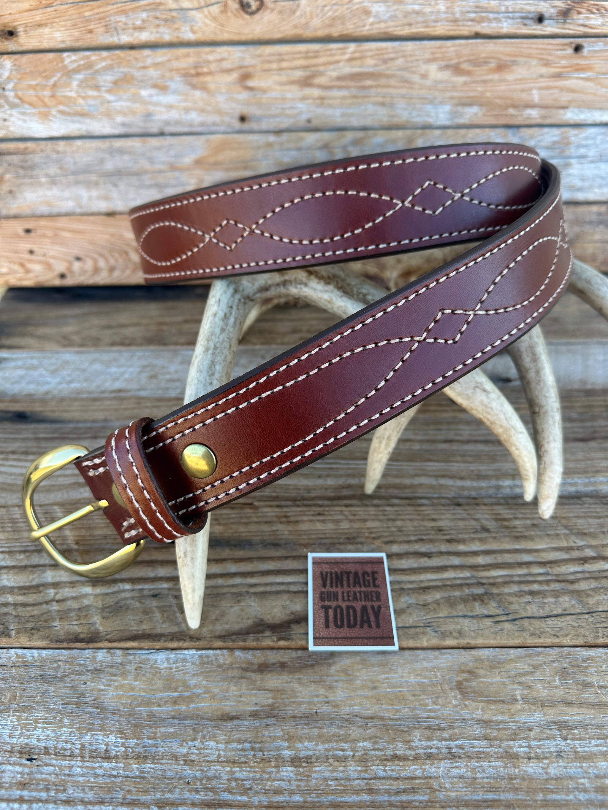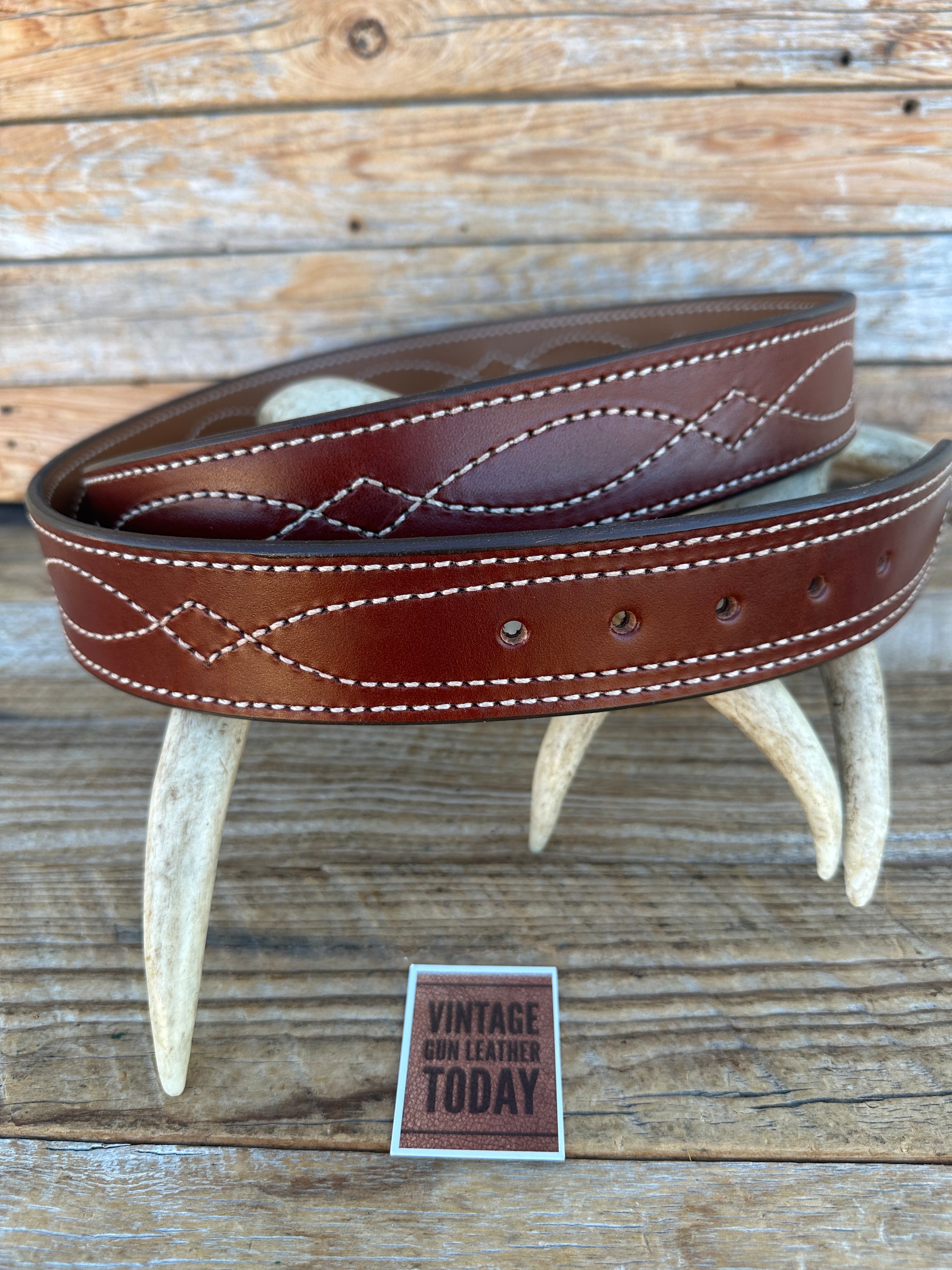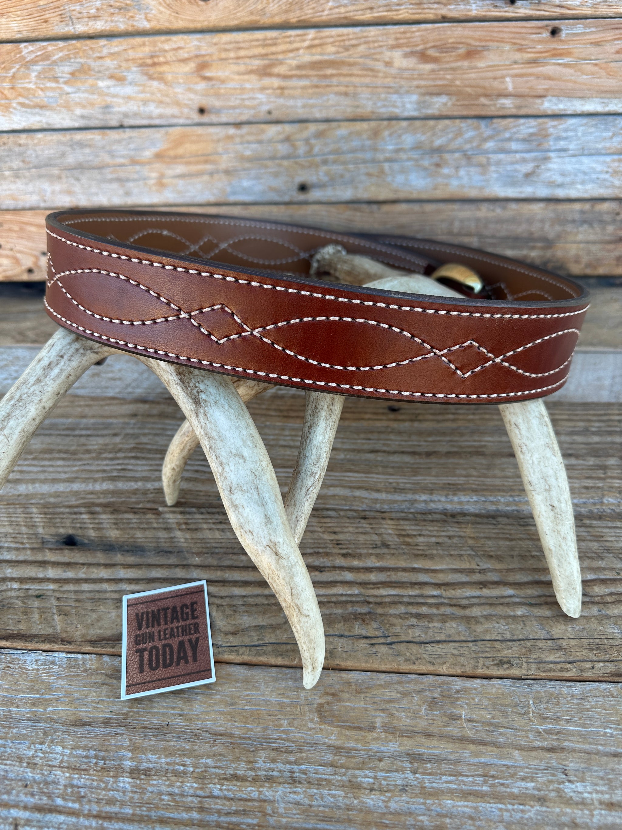 AKER B13 Brown Leather 1 3/4" Fancy Stitched Gun Belt Size 48