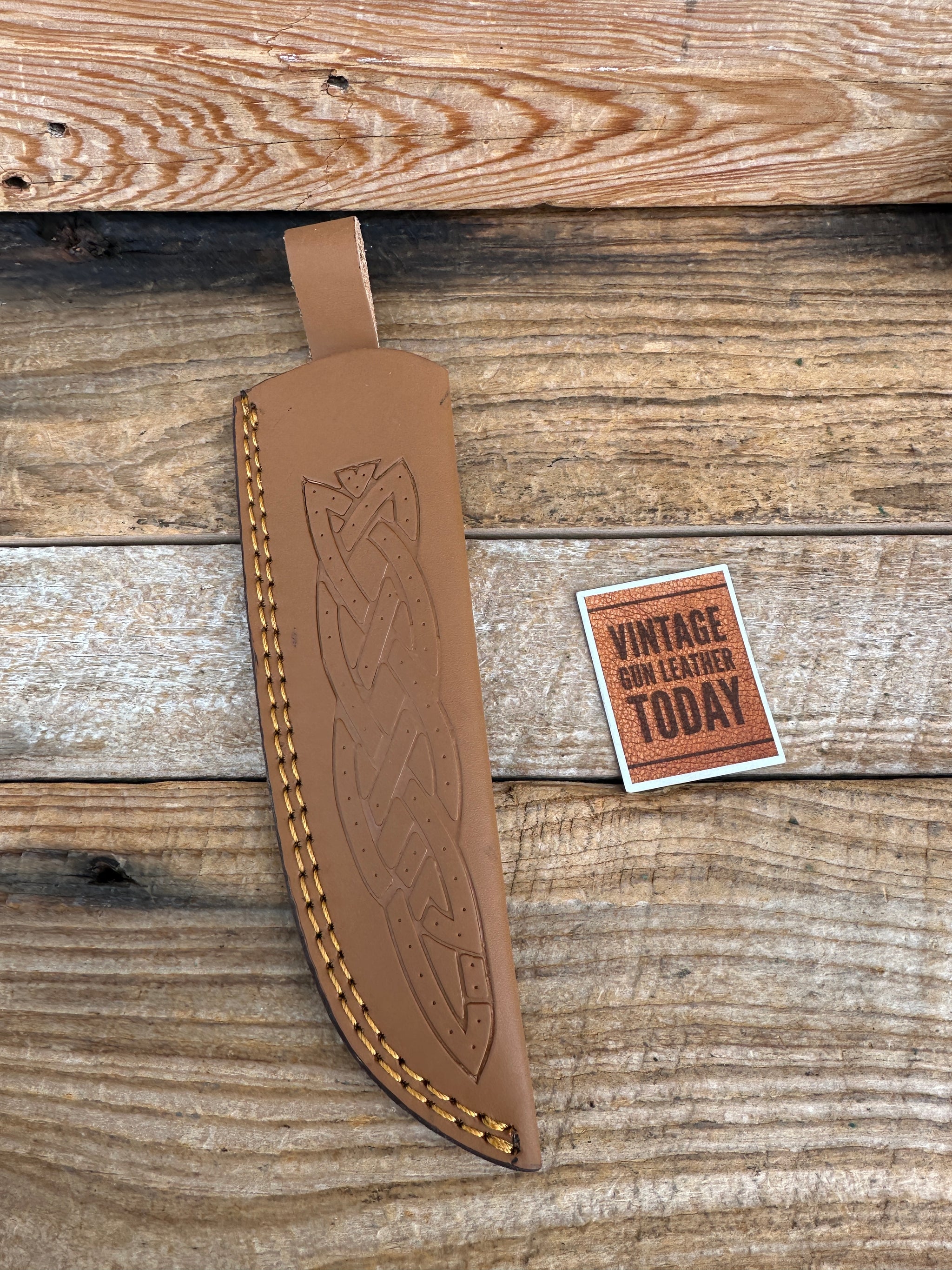 Brown Leather Stamped OWB Leather Knife Sheath 7 1/4" x 1 3/4"