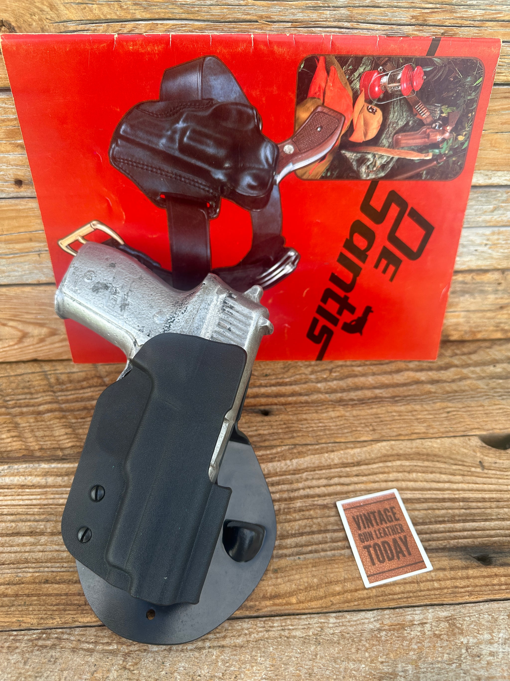 Vintage Desantis Gunhide, black Kydex paddle holster. This is Right draw for the Sig P228 / P229 without rail. Very solid well made holster. Holster is in like new condition..