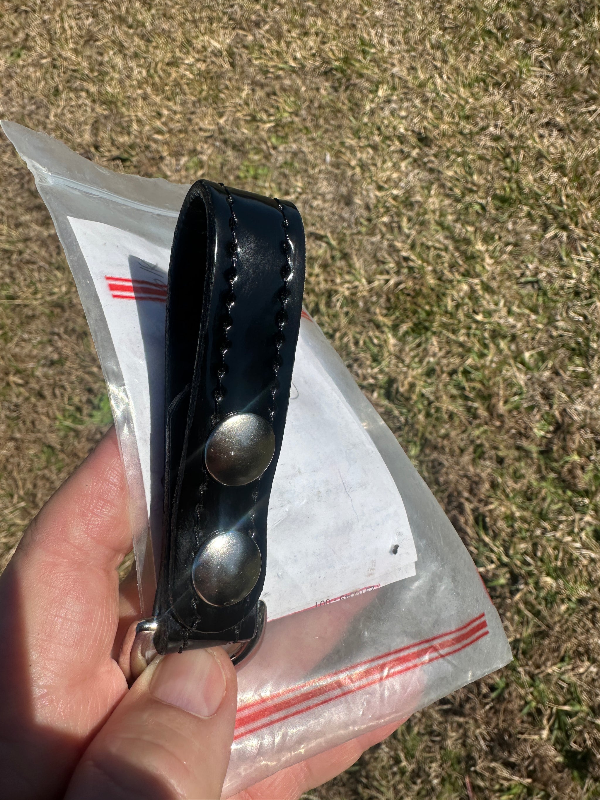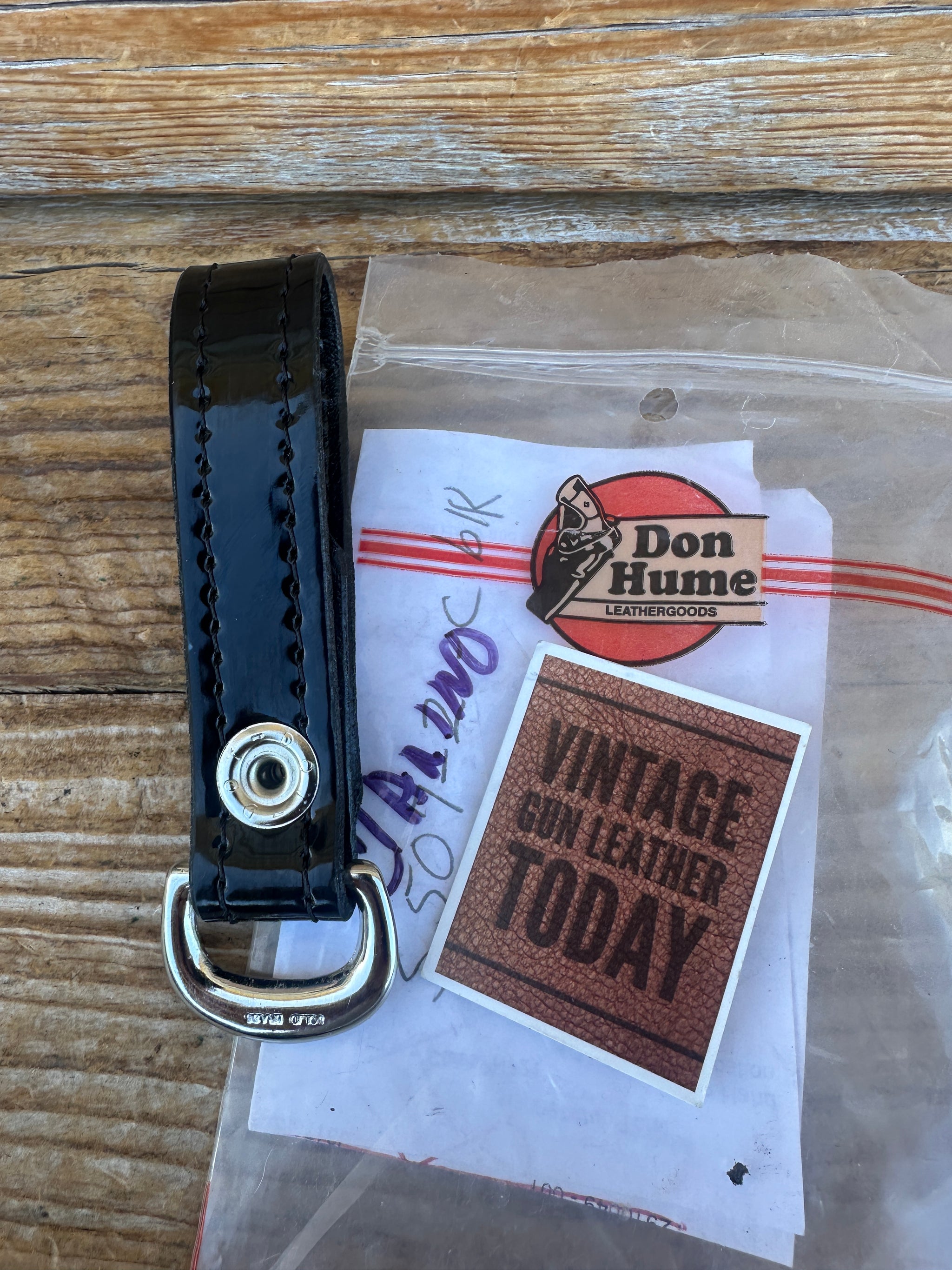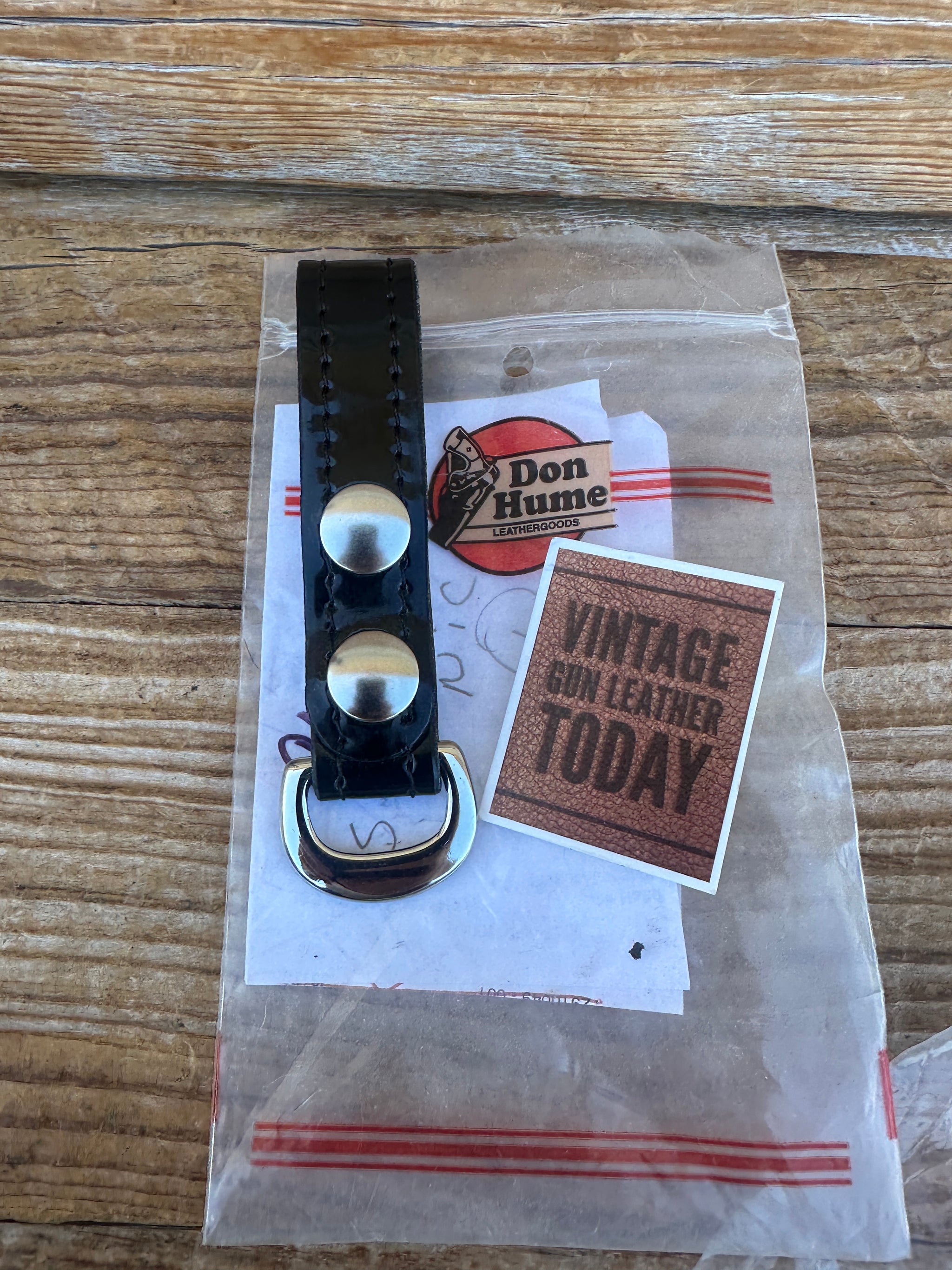 Vintage new old stock Don Hume Sam Browne strap anchor / D Ring Keeper. Anchors are Black Gloss Clarino with Nickel D ring and 2 snaps. This will fit a standard 2 1/4" duty belt.