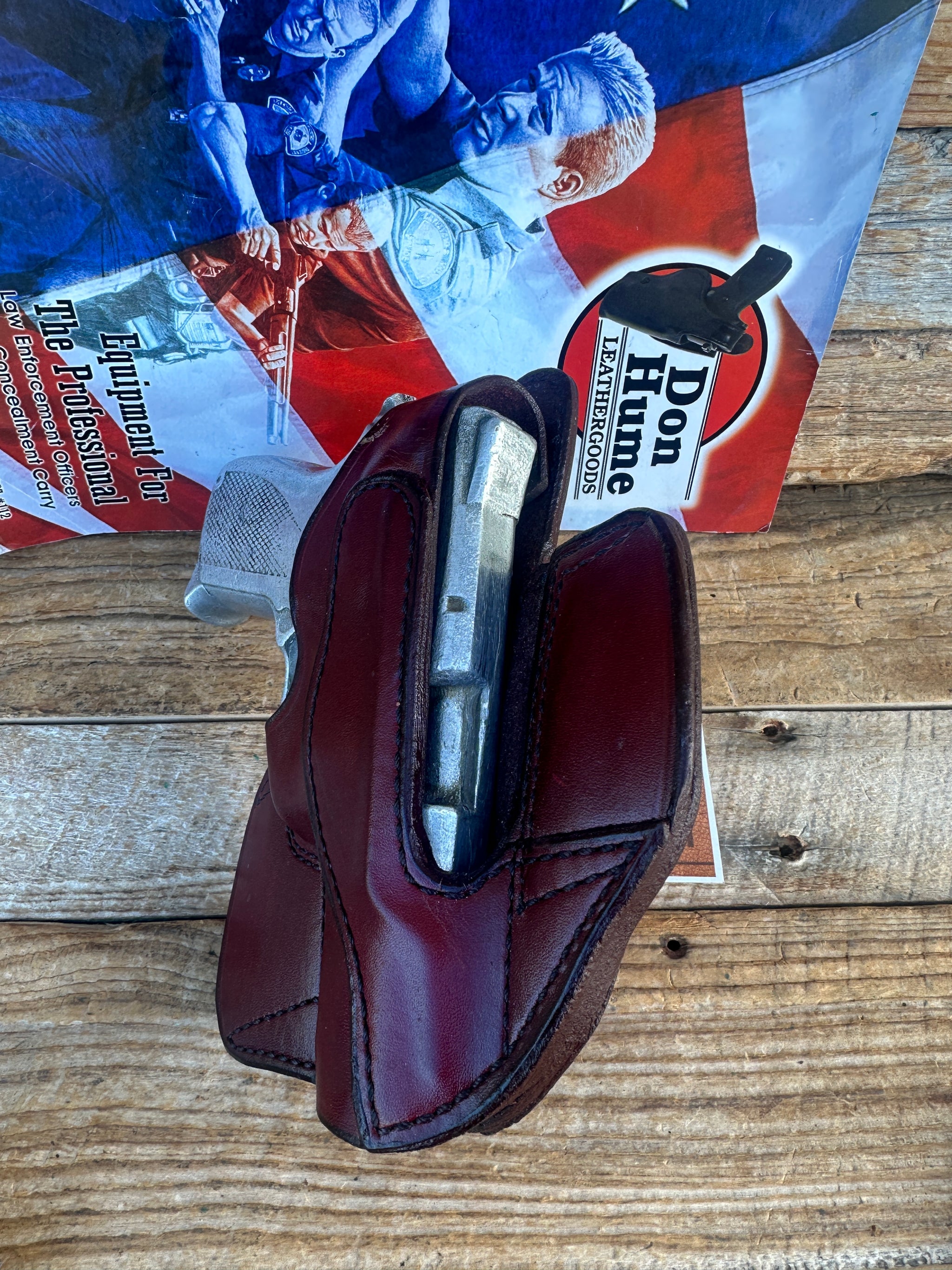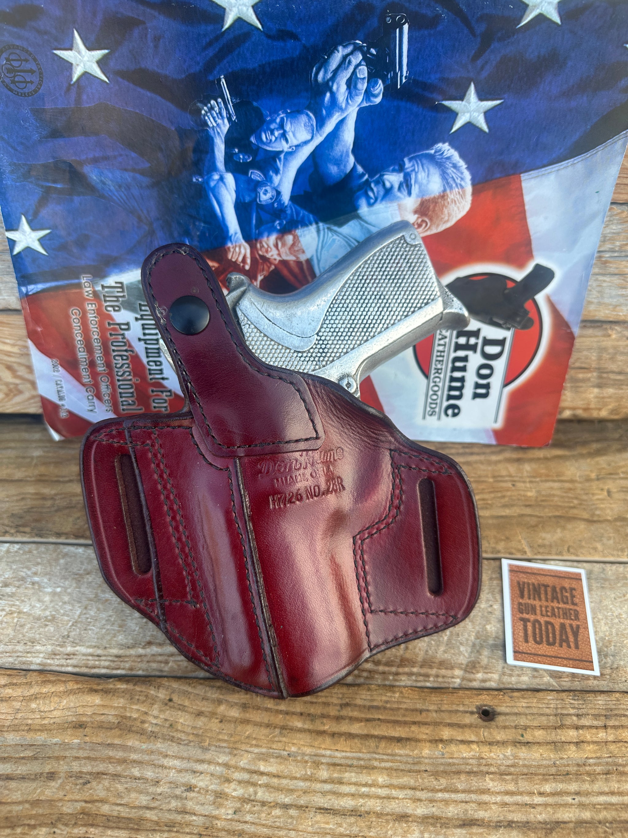 Vintage new old stock Don Hume Optics Ready H726 NO. 28R saddle brown leather holster. Holster is for the Smith & Wesson 3913, 6904, 6906 ROUND Trigger.This holster is no longer offered by Don Hume.
