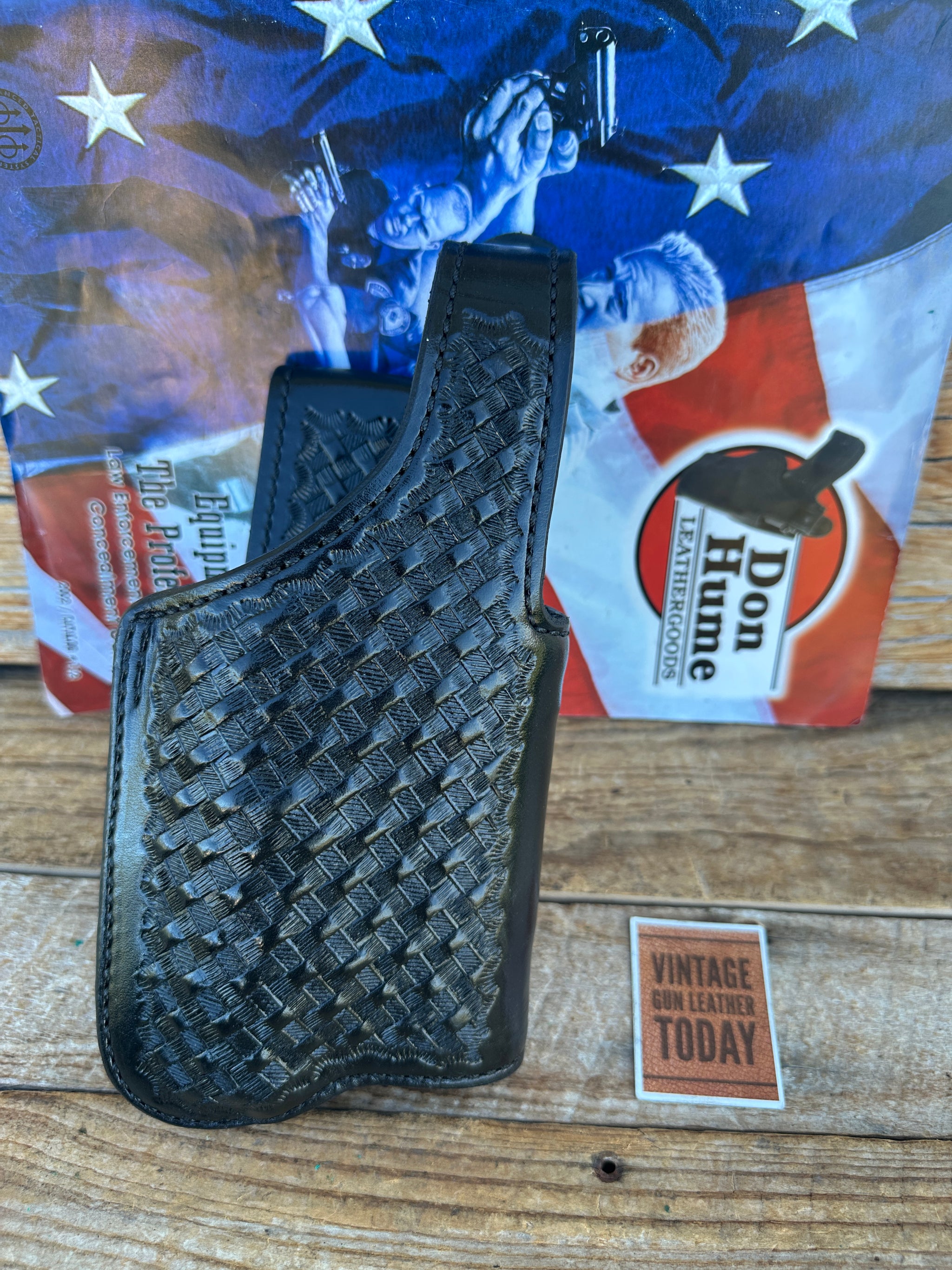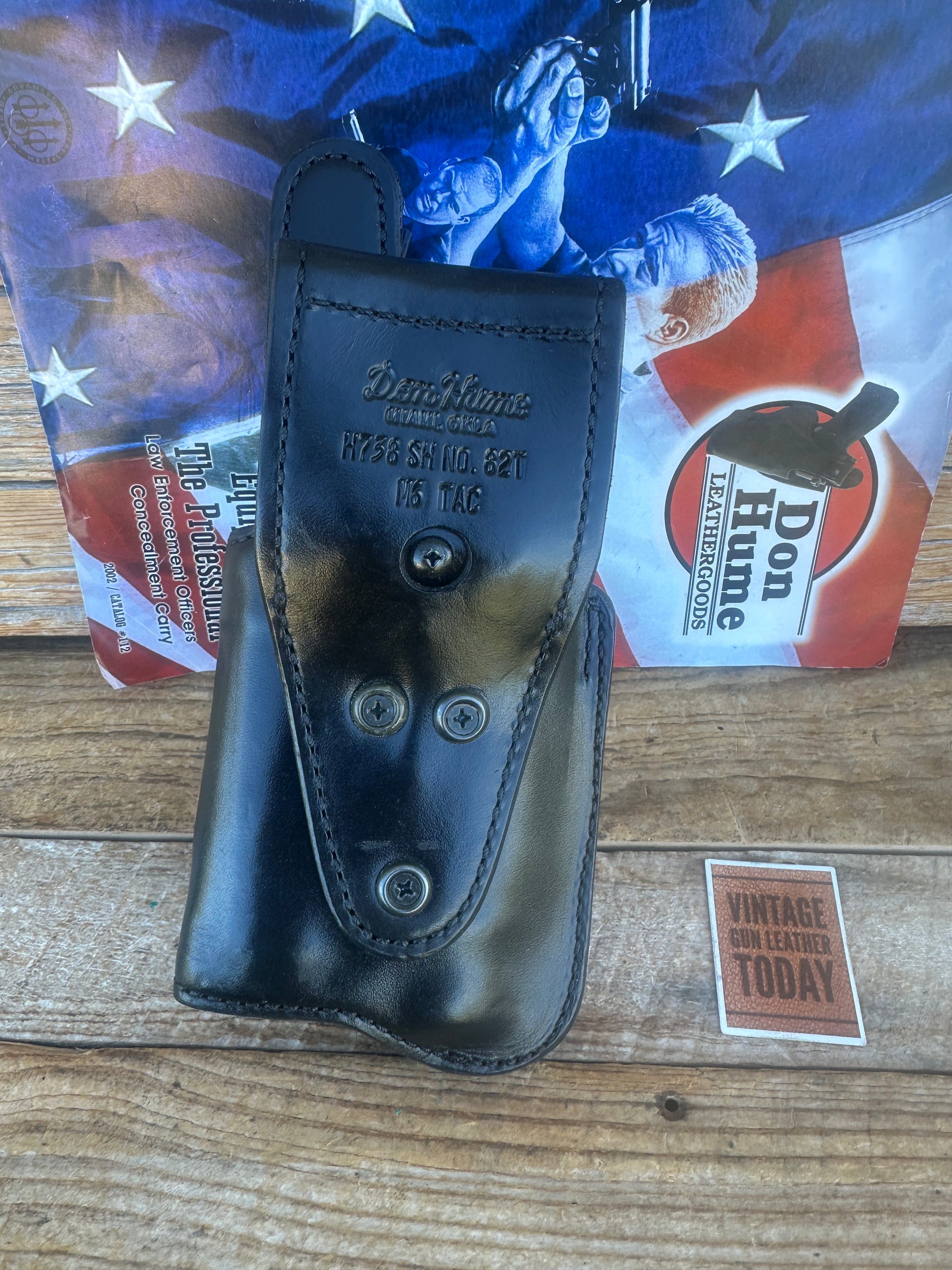 New old stock Don Hume H738 SH NO. 82T M6 "Tiger" duty holster. Holster is black basket leather with smooth leather lining. This is for the Smith & Wesson 4563 TSW with Streamlight M6 TAC Light. Very solid and well made holster..
