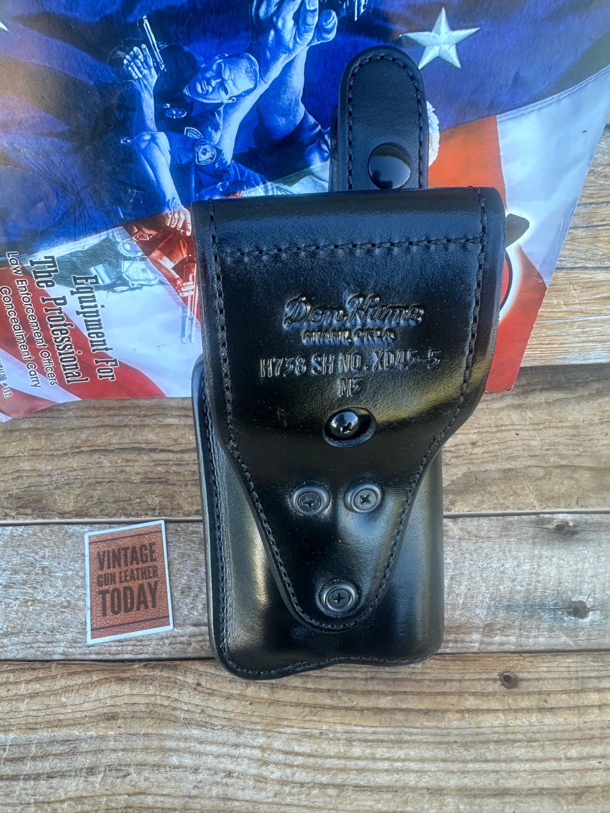 New old stock Don Hume H738 SH NO. XD45-5 M3 "Tiger" duty holster. Holster is black basket leather with smooth leather lining. This is for the Springfield XD 45 5" with Streamlight M3 TAC Light. Very solid and well made holster..