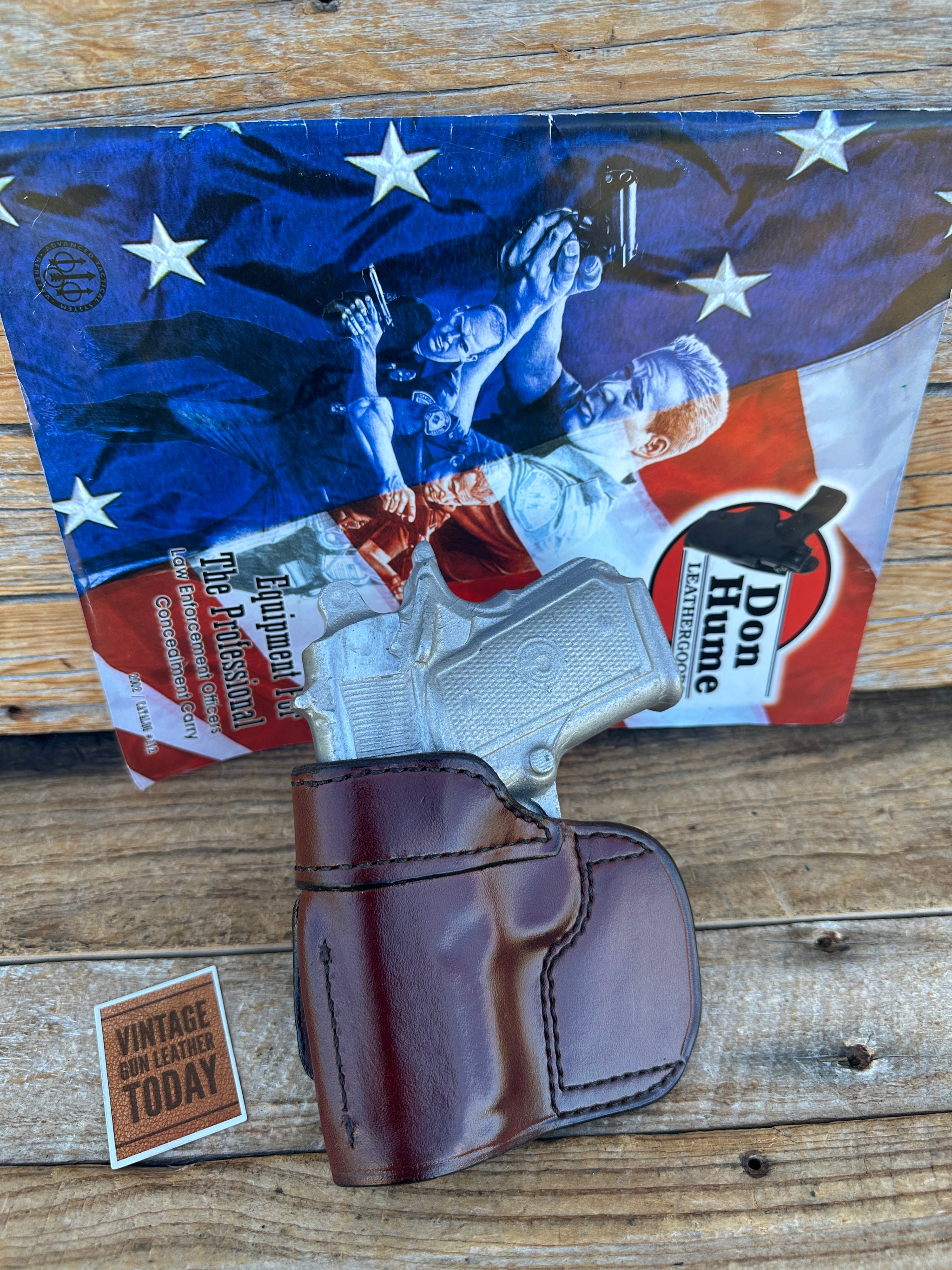Vintage new old stock Don Hume Askins' Avenger style Holster H724 OT 10P10. Holster is saddle brown leather and black stitched with sewn sight rail. This is for the following: