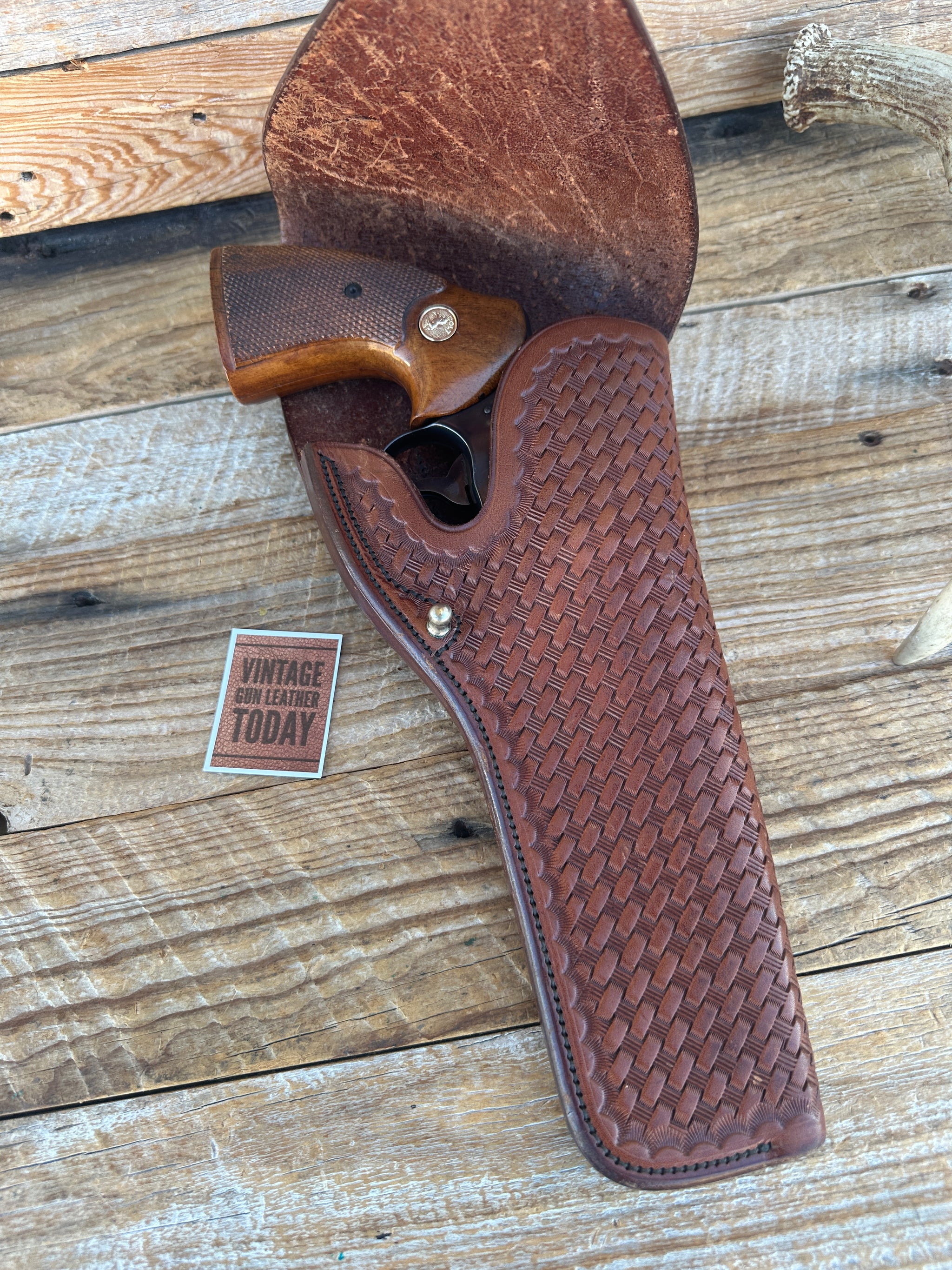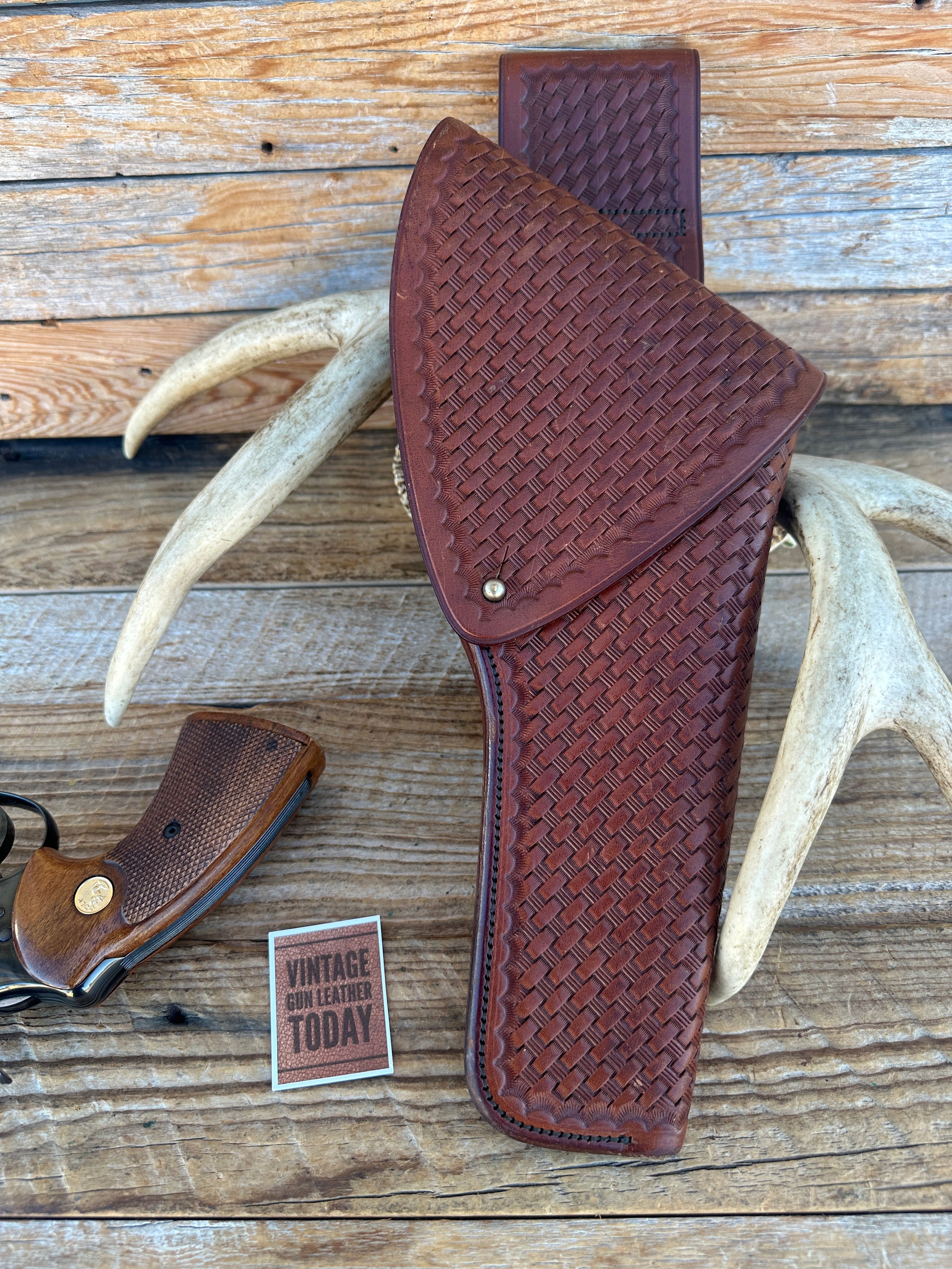 Earls Saddle Shop FM Pitt Brown Basket Leather Swiver Holster For Colt Python 6"
