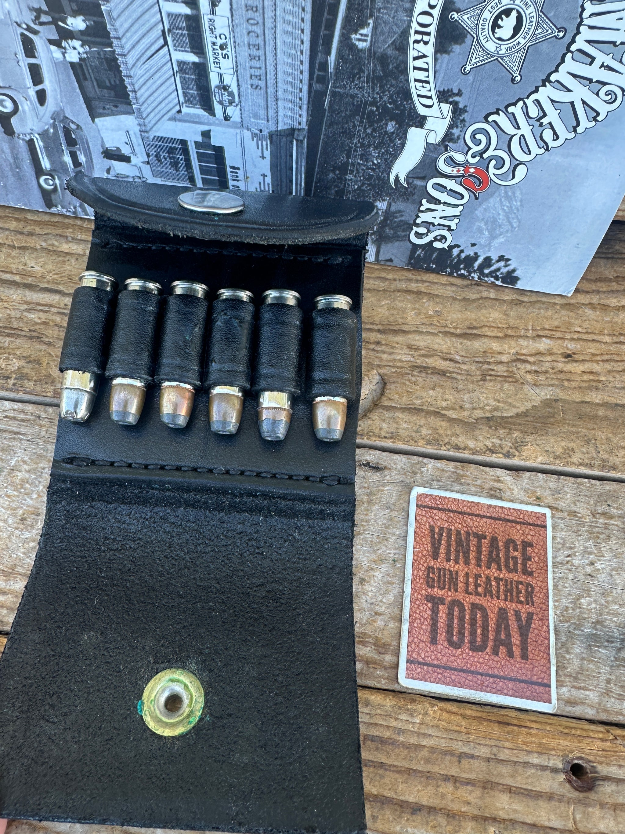 Vintage new old stock 1970's - 1980's Tex Shoemaker black leather pocket cartridge carrier. This will hold 6 .38 / .357 cartridges..