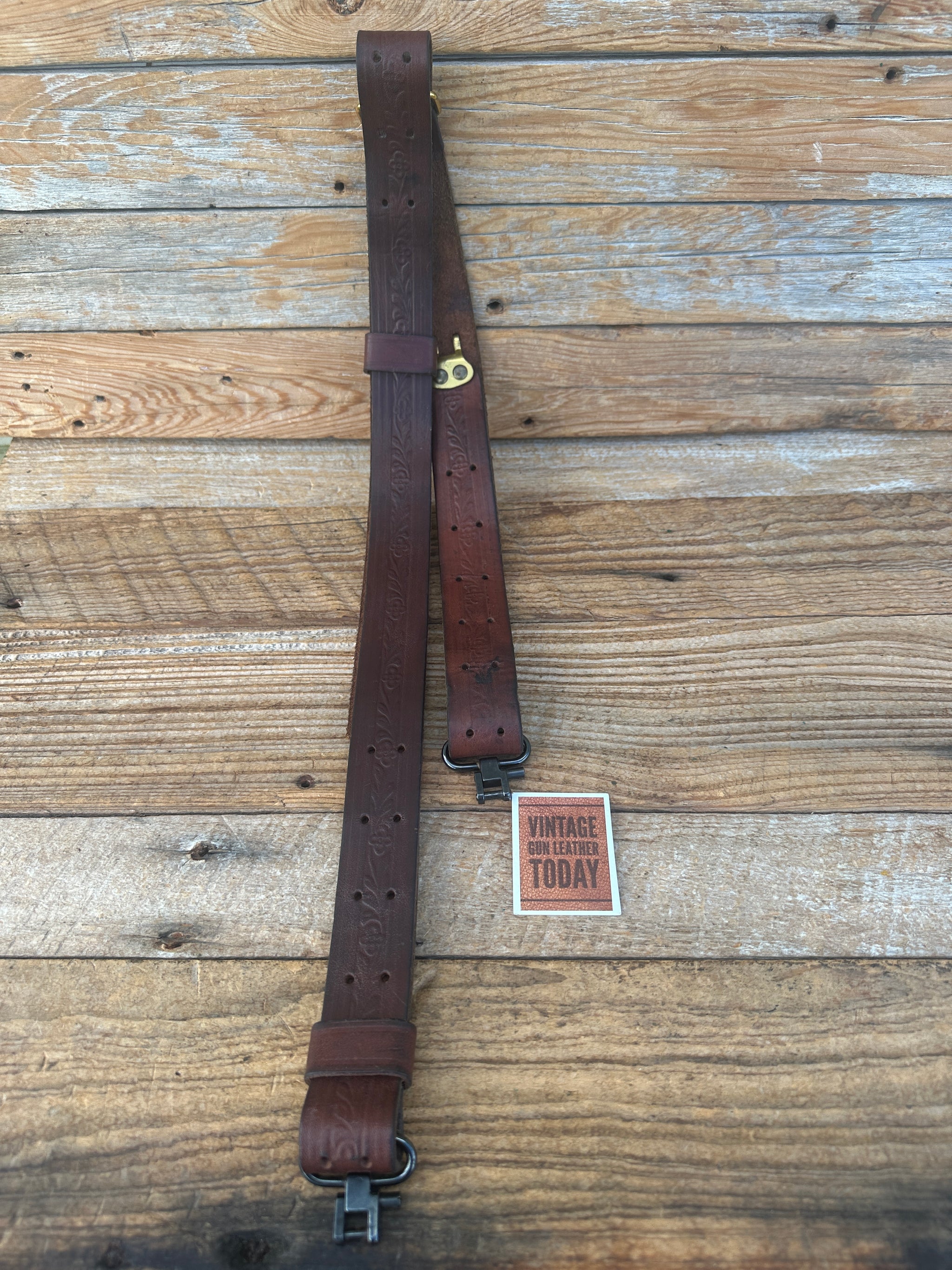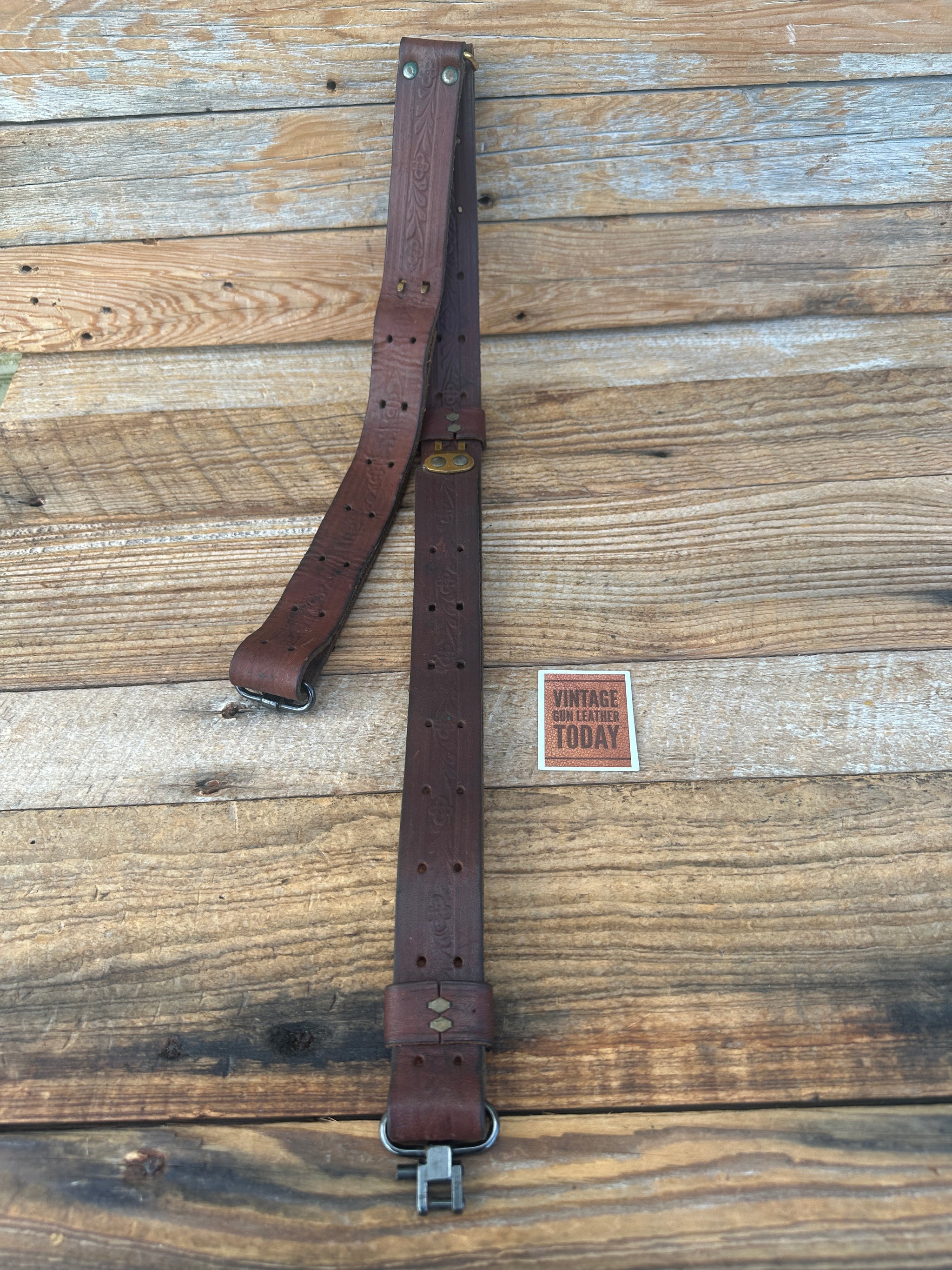 Vintage Brown Leather Floral Stamped Military Style Adjustable1.25" Rifle Sling