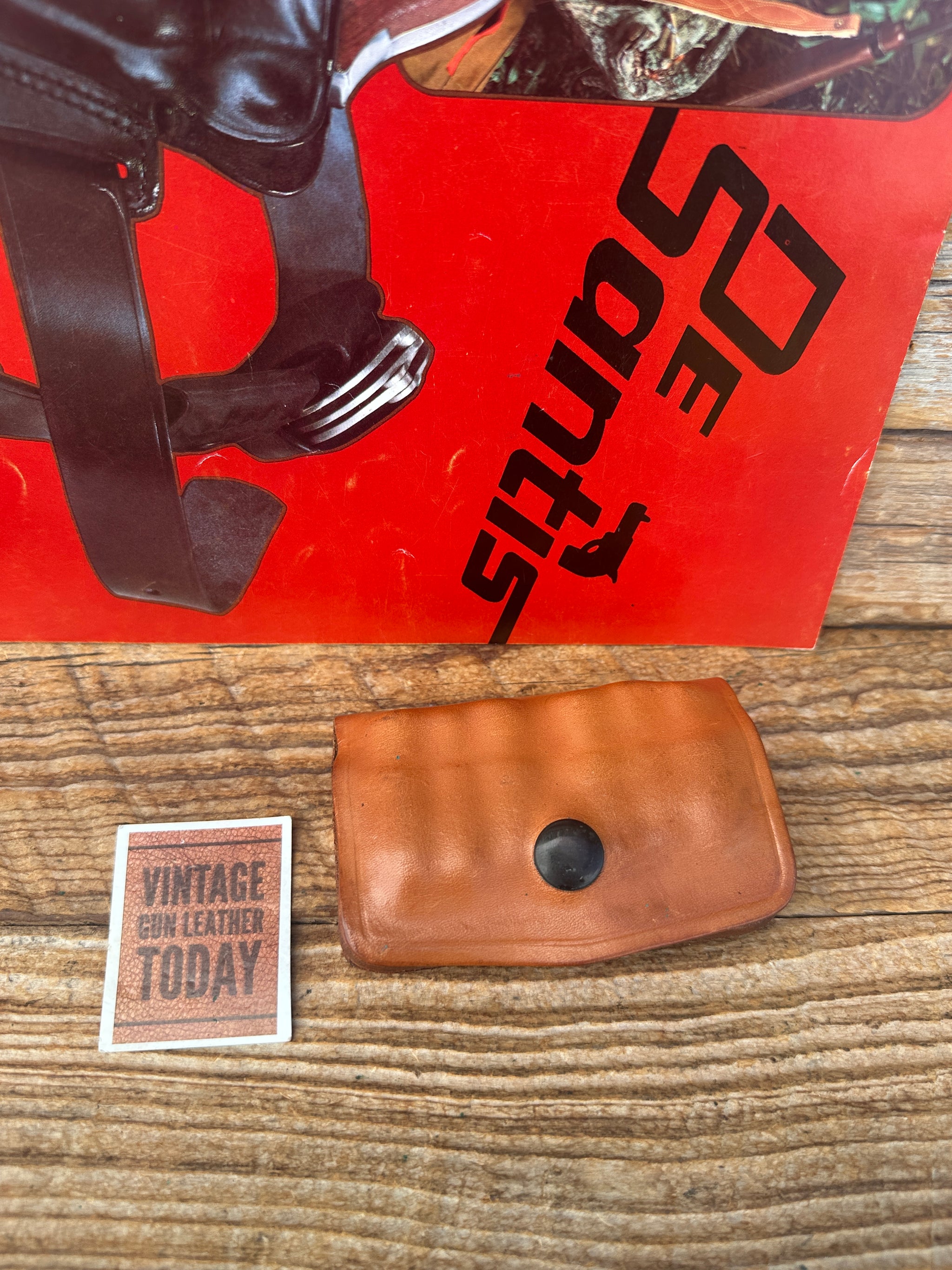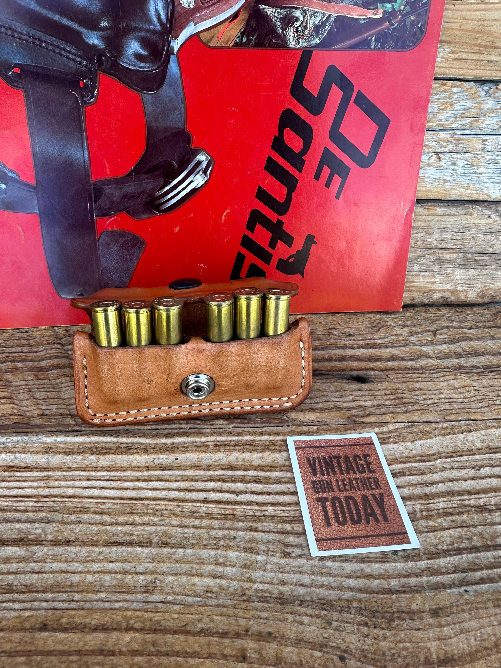 Vintage Desantis Brown Plain Leather 3x3 .44 Cartridge Carrier This will snap over a belt up to 2 1/4" or fits nicely in a coat or trouser pocket. Very difficult to find these in .44..