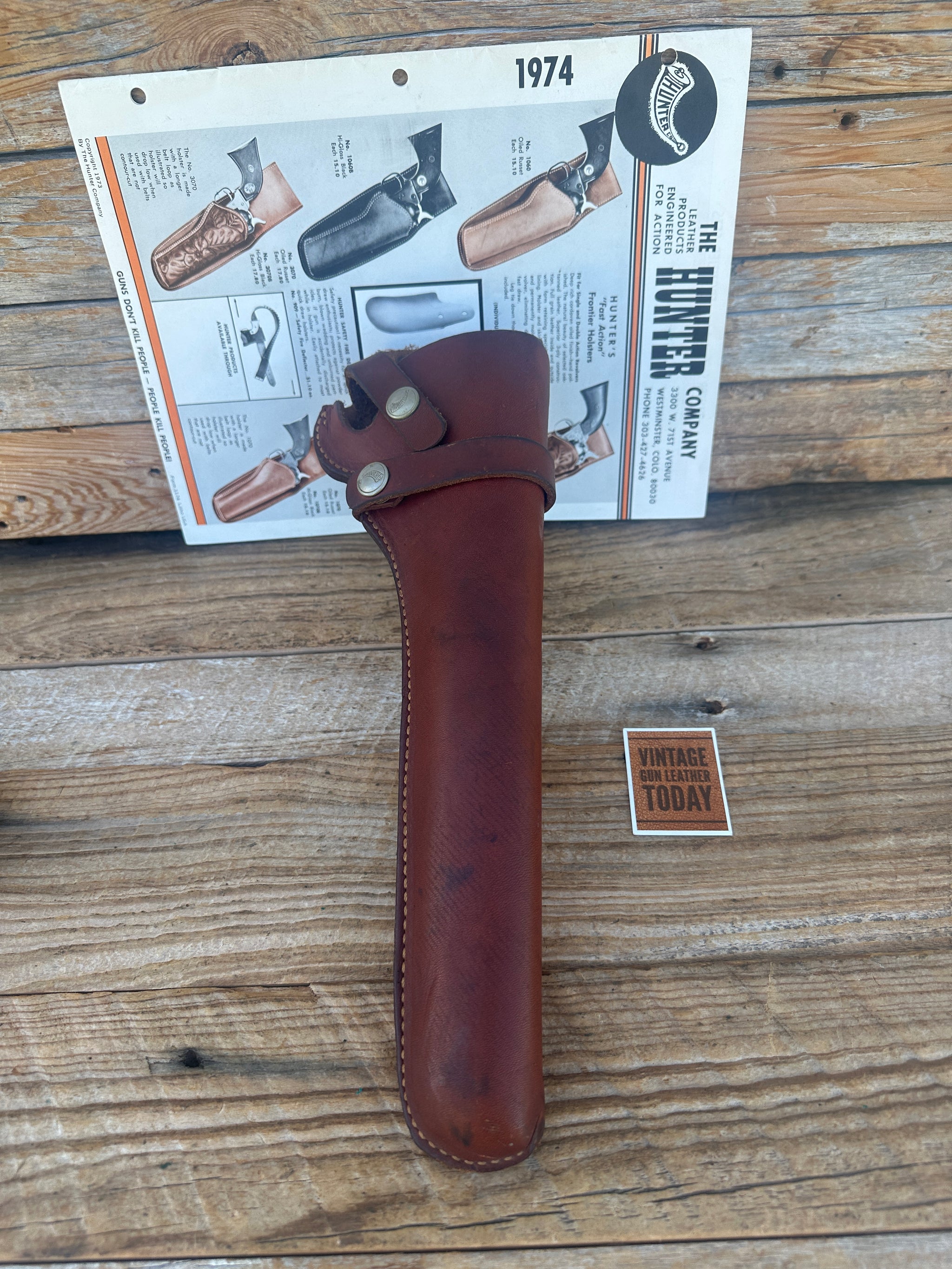 Vintage Hunter 1100 47 brown leather OWB holster. Leather stitching and hardware all in very nice condition. This holster has Hunters powder horn brass snaps dating this prior to 1965. This is much thicker leather and higher quality construction compared to new production. Holster is Right draw for the following: