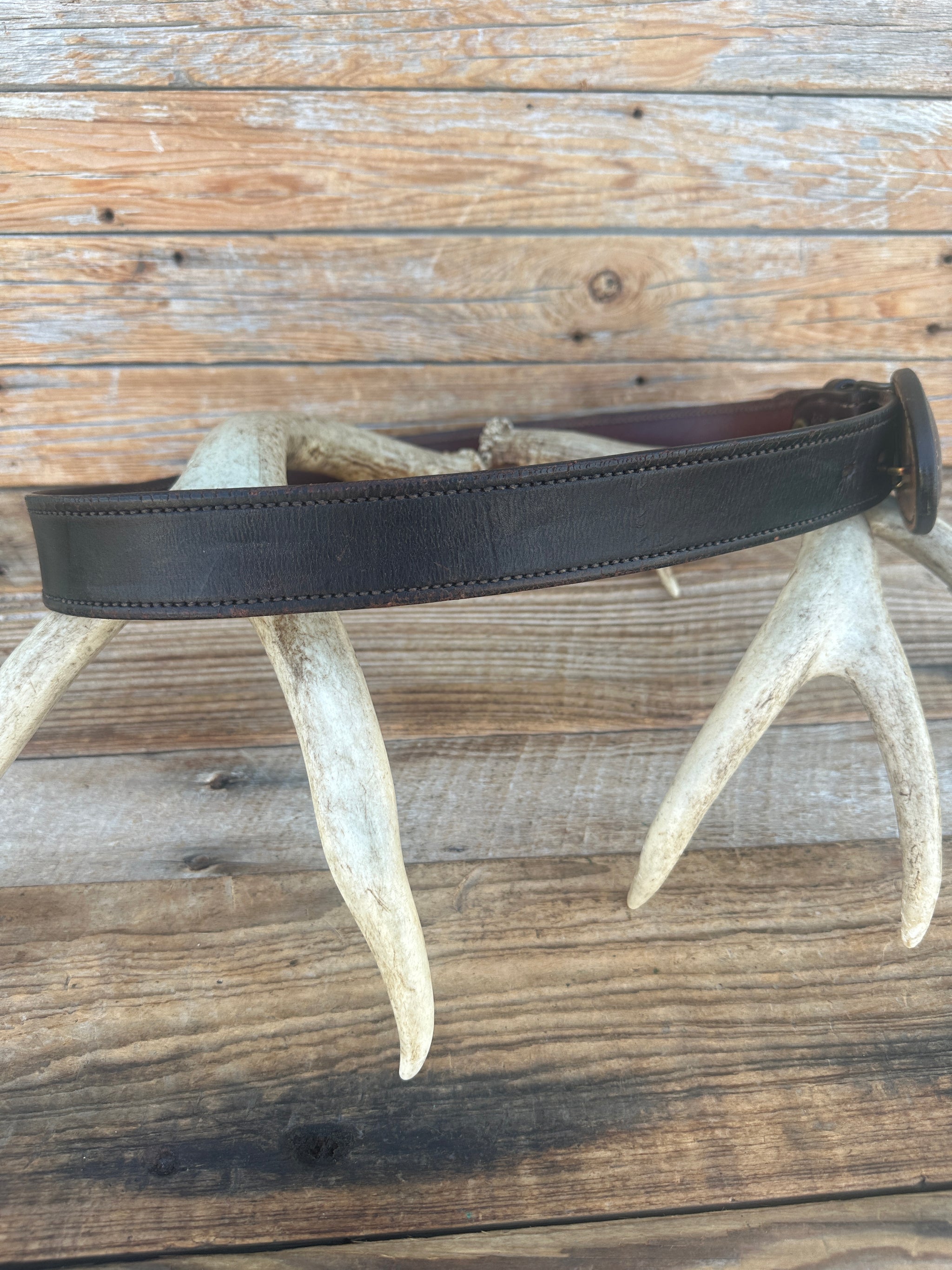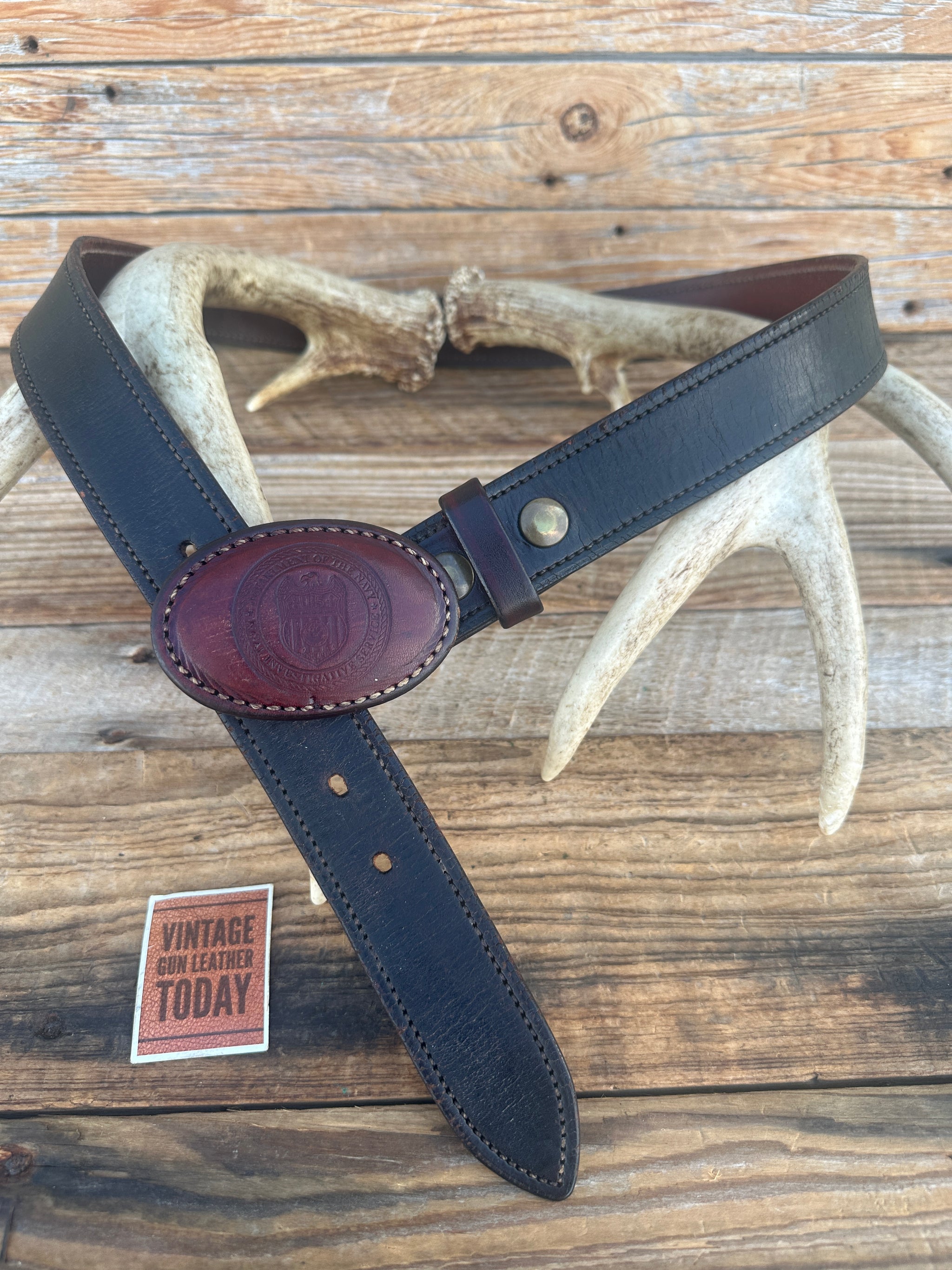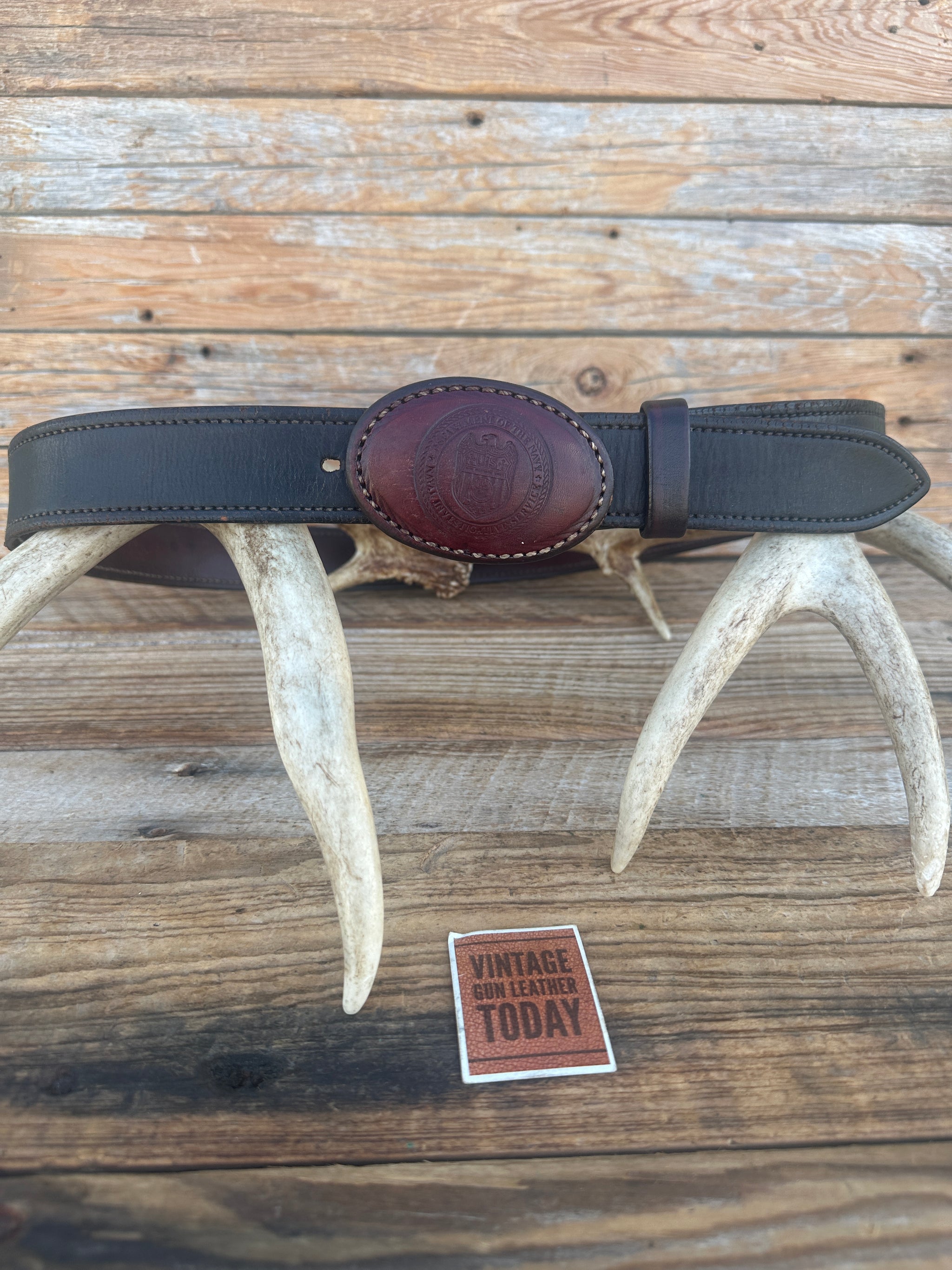Vintage Strong Leather Brown Leather Belt w/ Naval Intelligence Service Buckle
