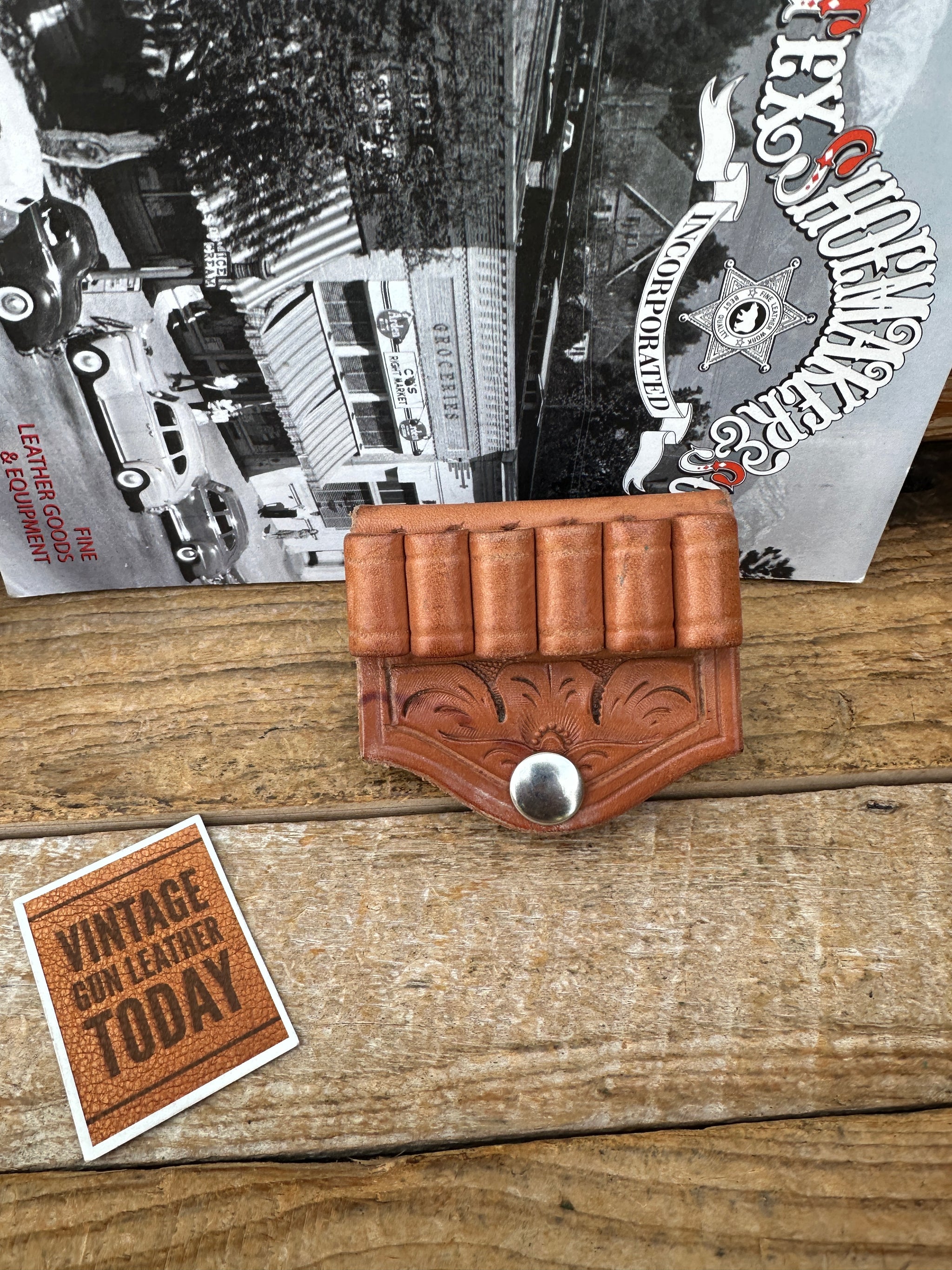 Vintage Tex Shoemaker 158 38 Floral Carved 6 Round .38 .357 Cartridge Belt Slide