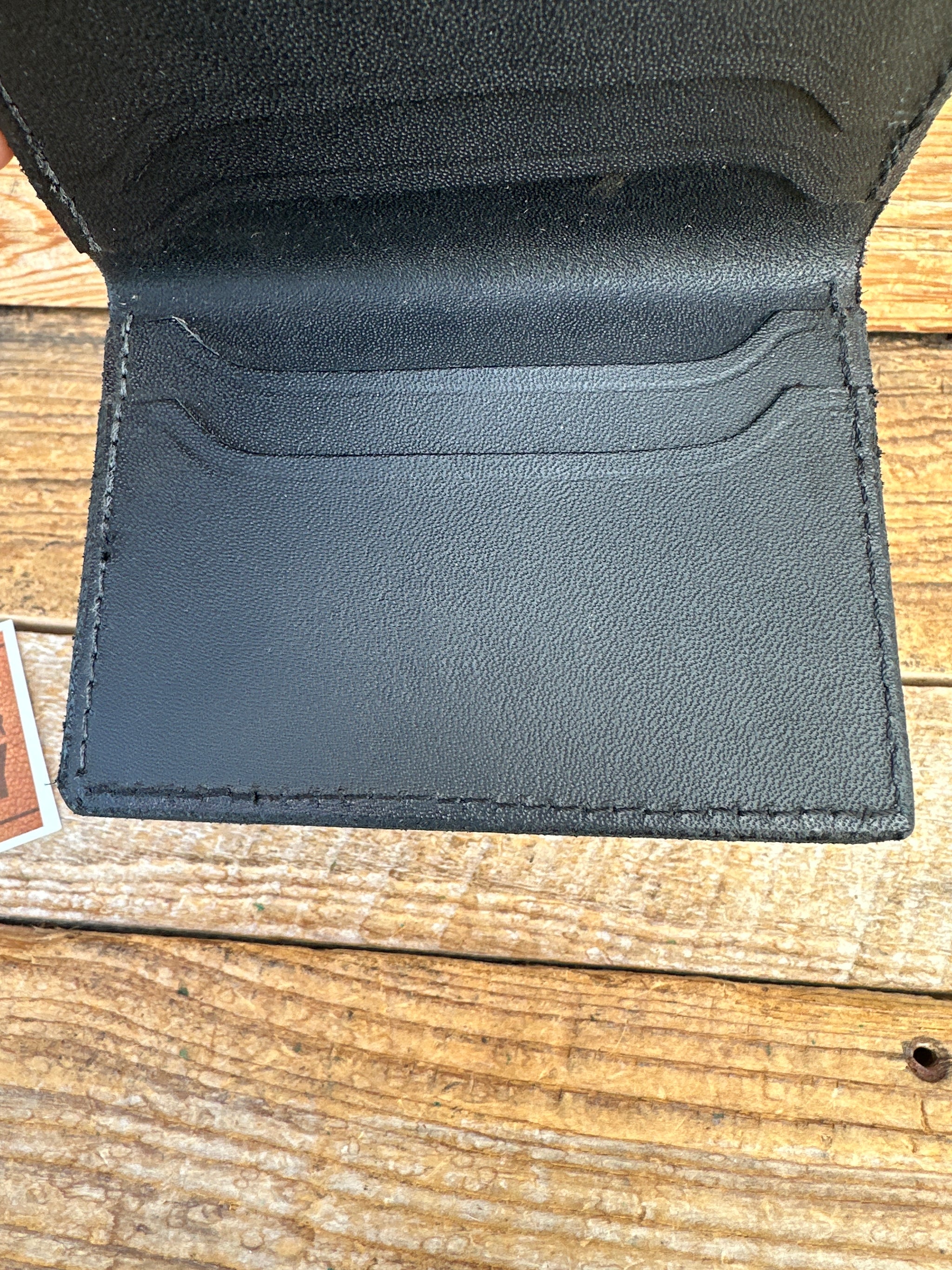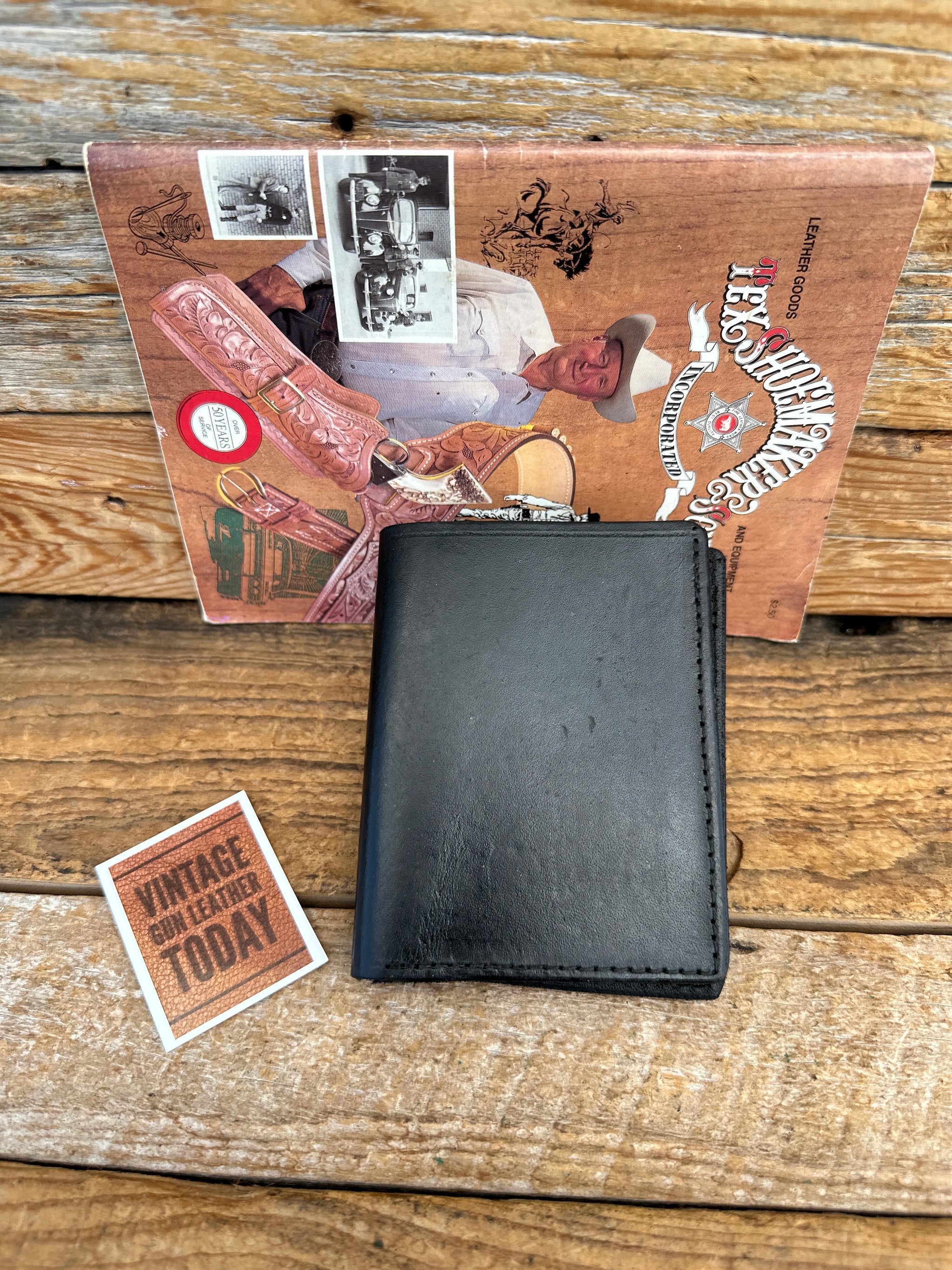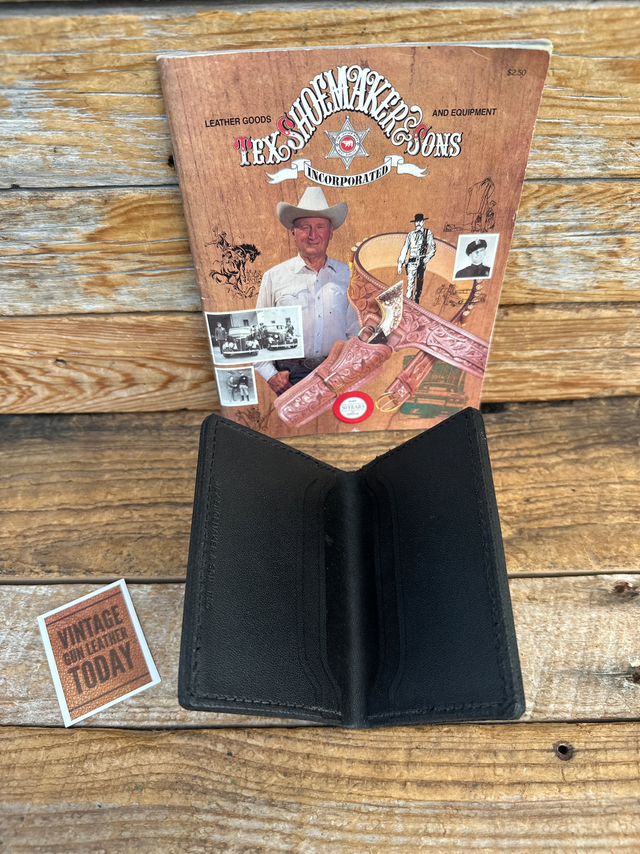 Vintage Tex Shoemaker Black Leather Bi Fold 4 Credit Card Cash Back Wallet