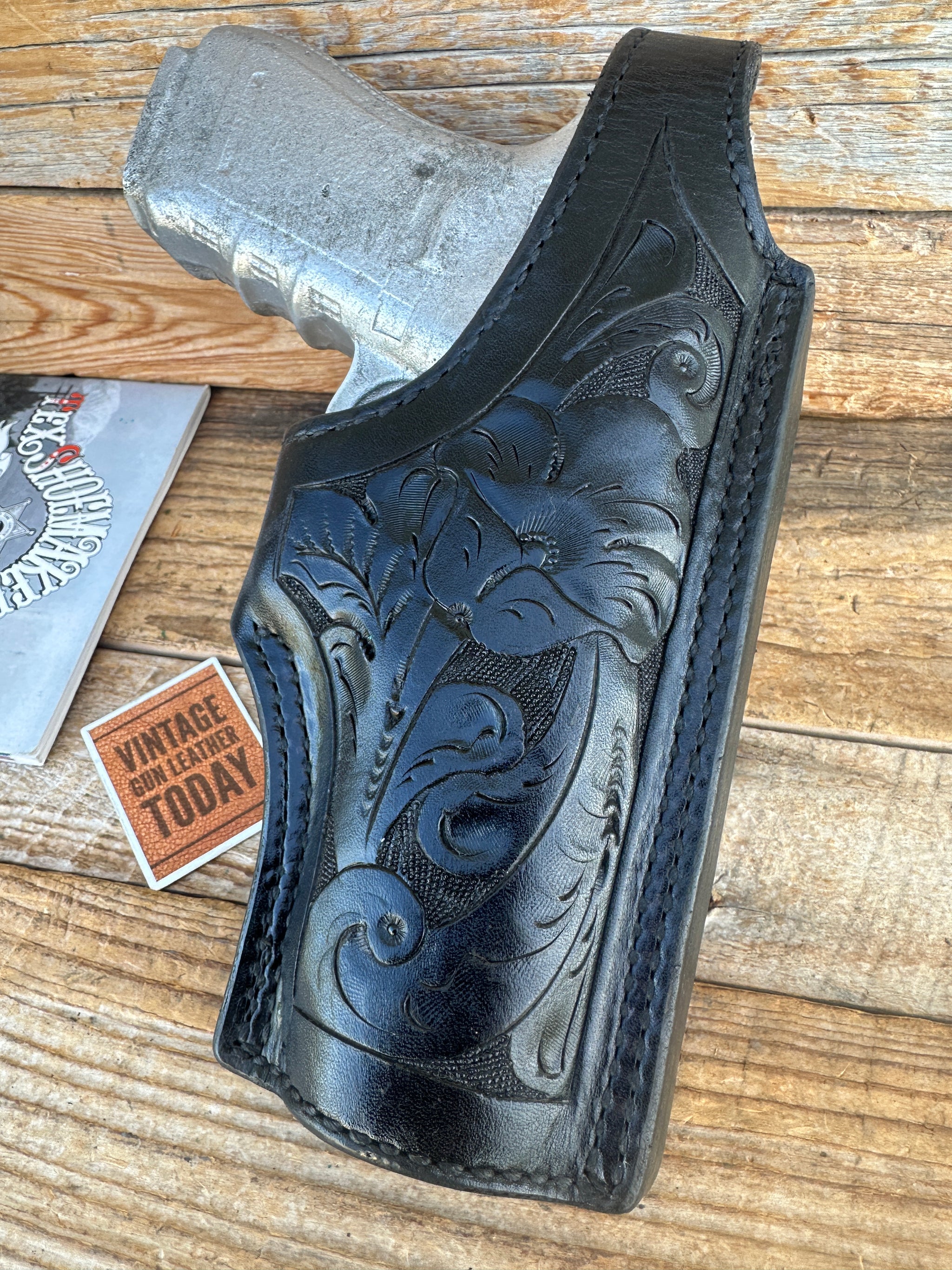Vintage Tex Shoemaker Floral Carved Black Leather Lined Holster For GLOCK 20 21