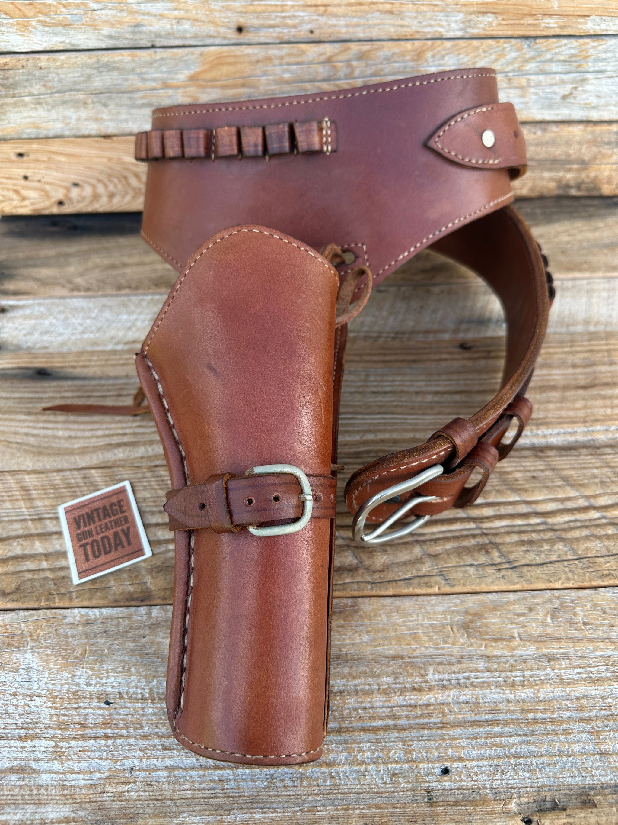 Western Leather Cartridge Gun Belt For 7" Single Action Revolver .45 Long Colt